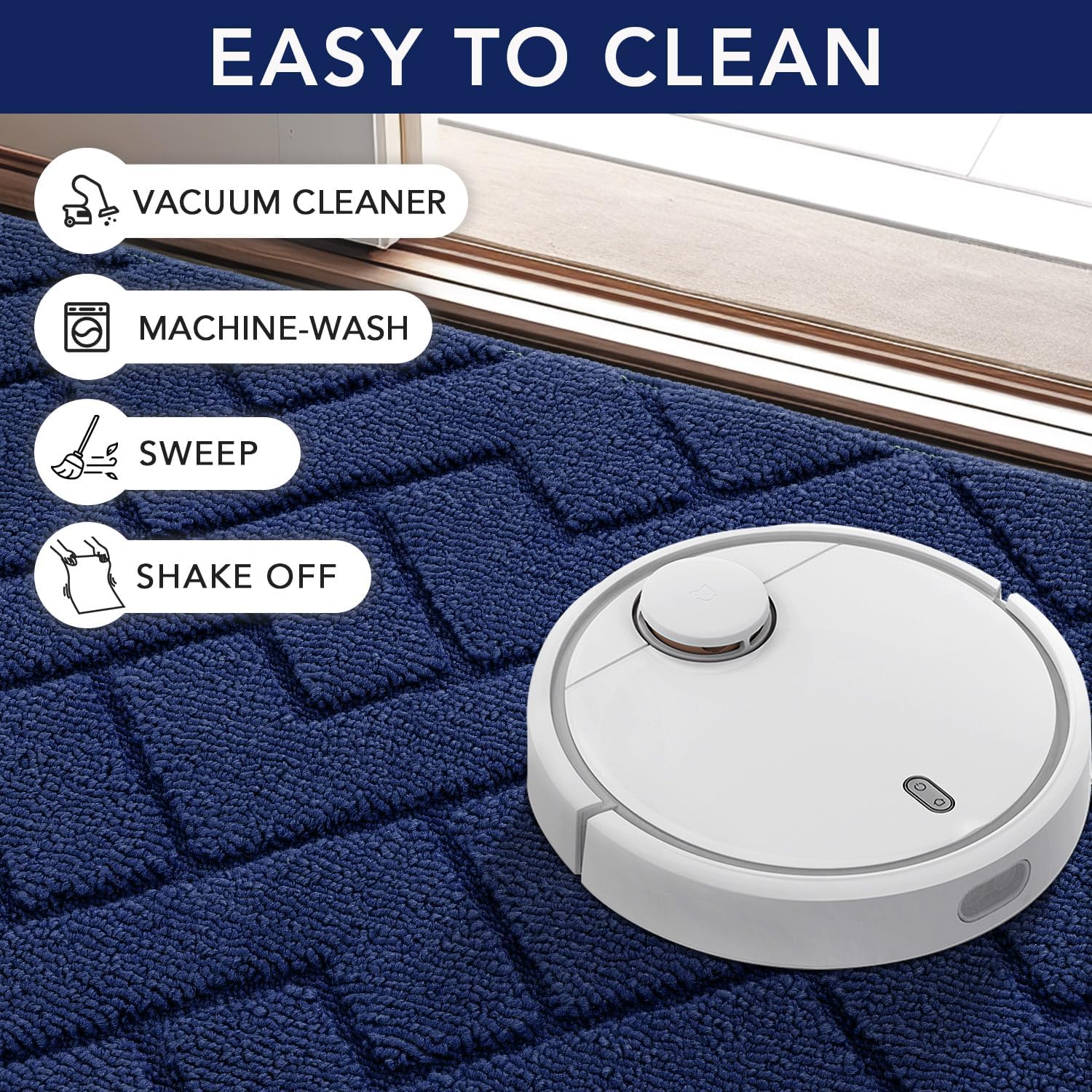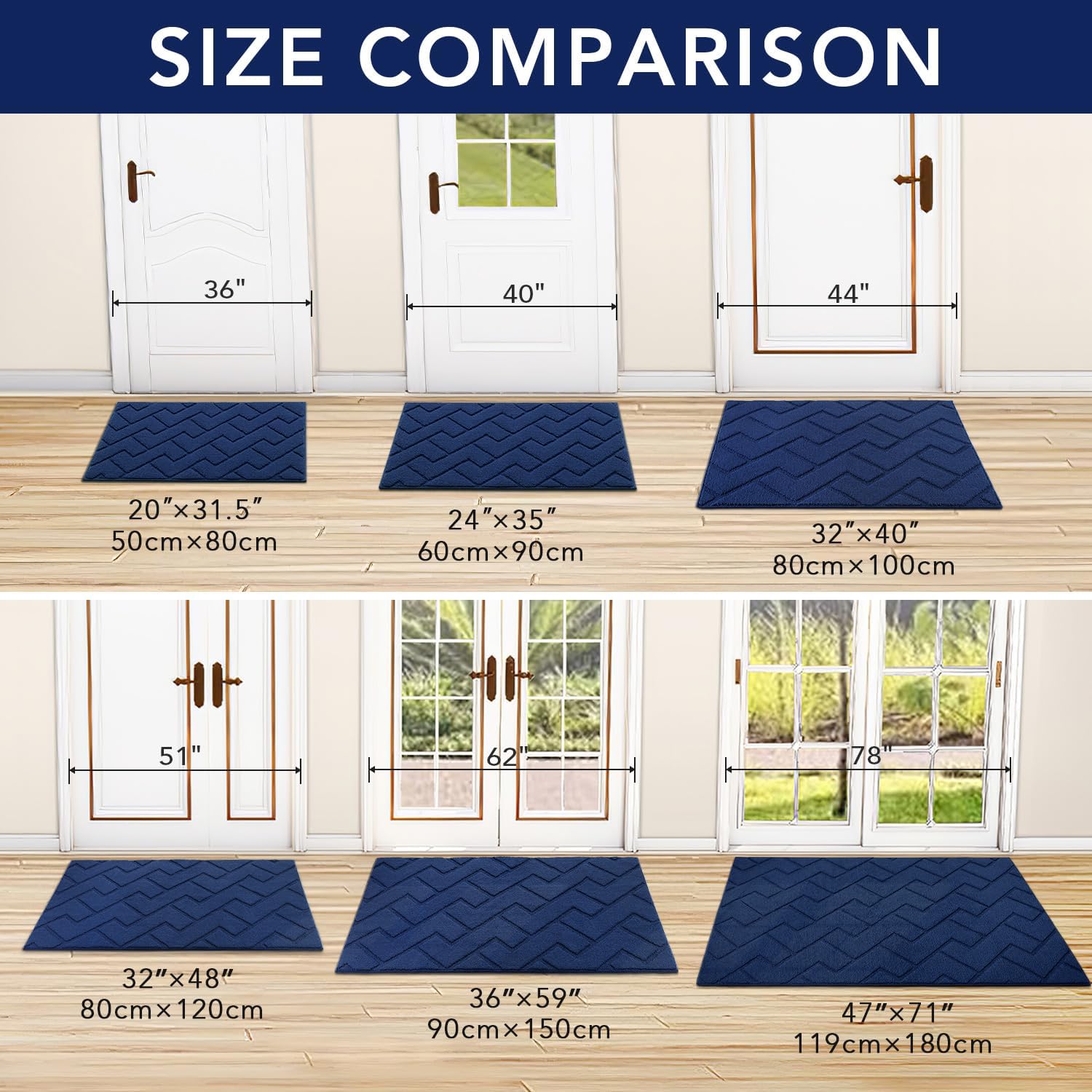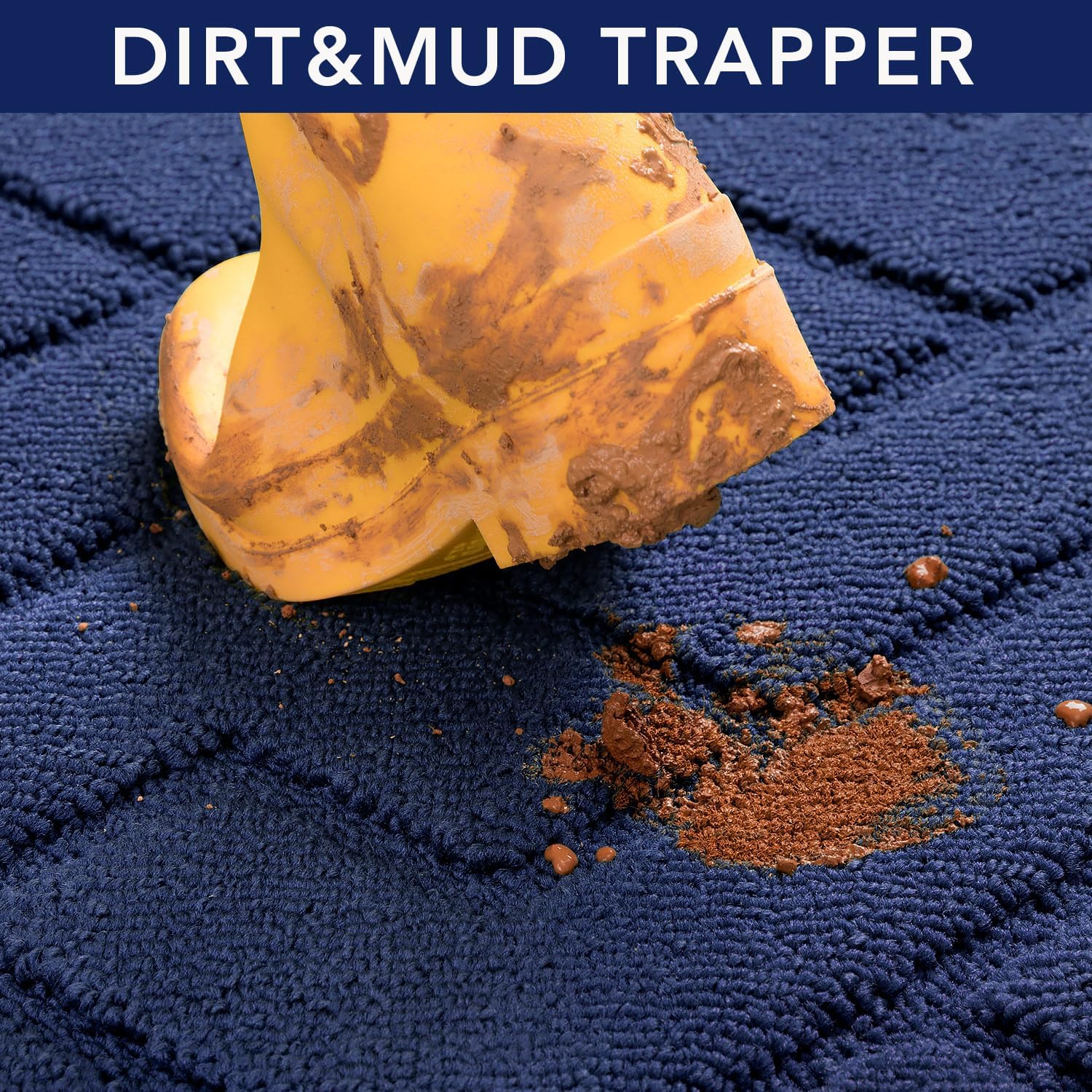 hicorfe Indoor Doormat,Front Back Door Mat TPR Backing Non Slip Mats 20″x31.5″ Absorbent Resist Dirt Entrance Doormat Inside Floor for Entryway Washable Low-Profile(Navy Blue)