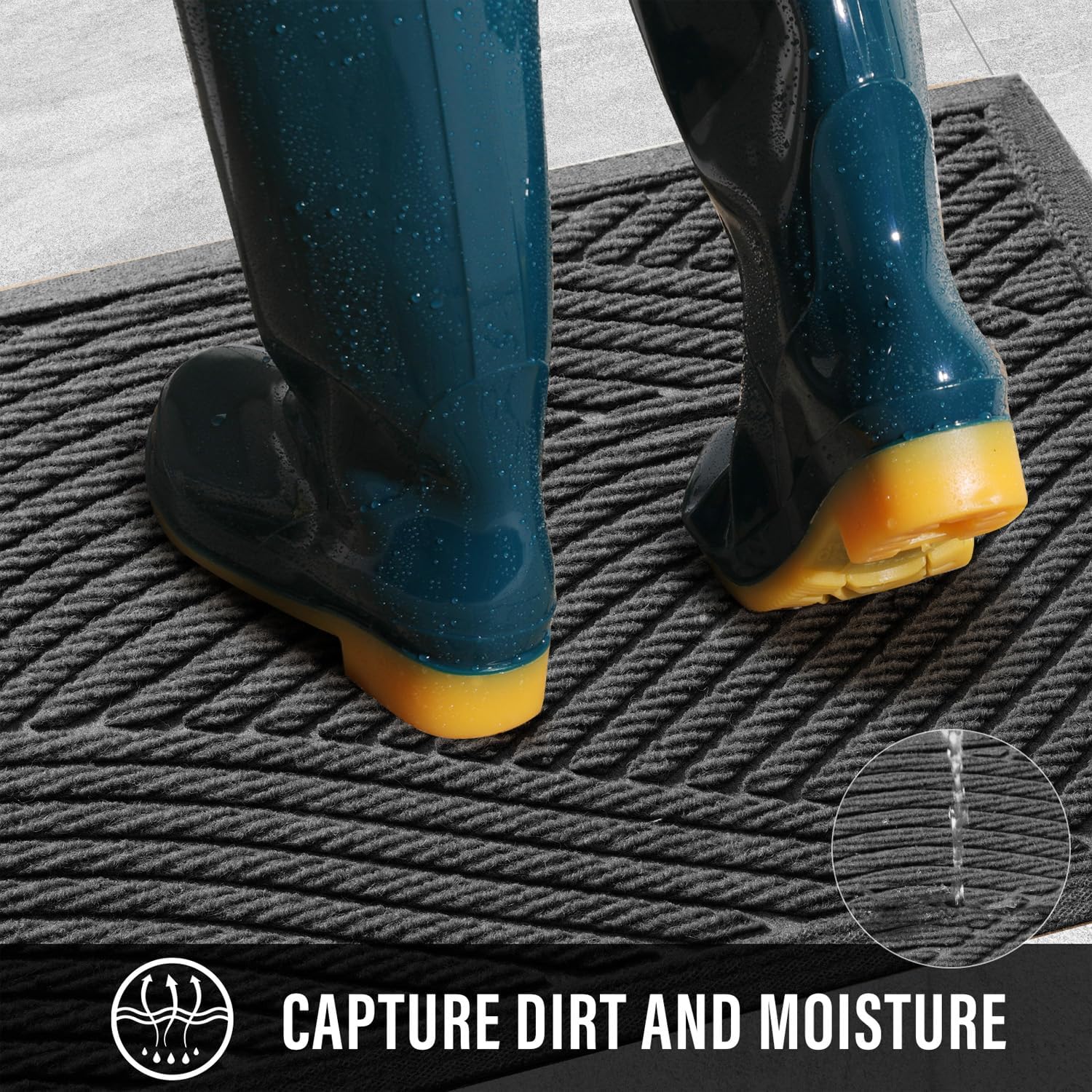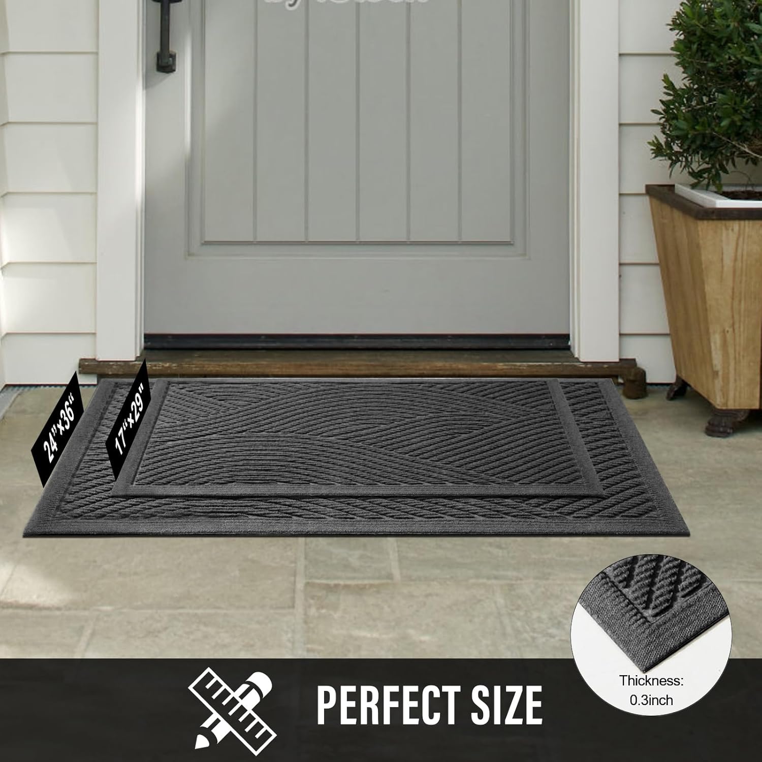 HIYARD Sturdy Front Door Mat, Absorbent Muddy Dirt Resist Welcome Door Mats Outdoor Indoor, Stain and Fade Resistant, Non-Slip Backing Entry Mat Low Profile Doormat for Entryway, 29×17, Grey