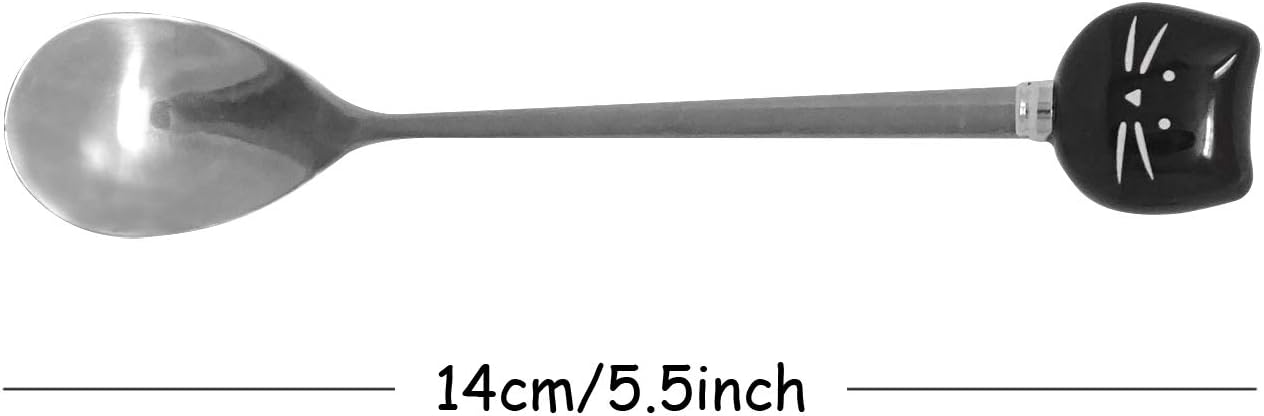 Material: ceramic + stainless steel Color: black, white Length: 14cm/5.5inch Package included: 2 x cute cat spoon Are you looking for a spoon for your mug? These spoons can be applied to all kinds of mugs Especially suitable for cat mugs