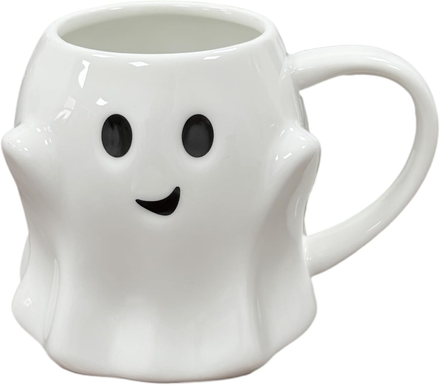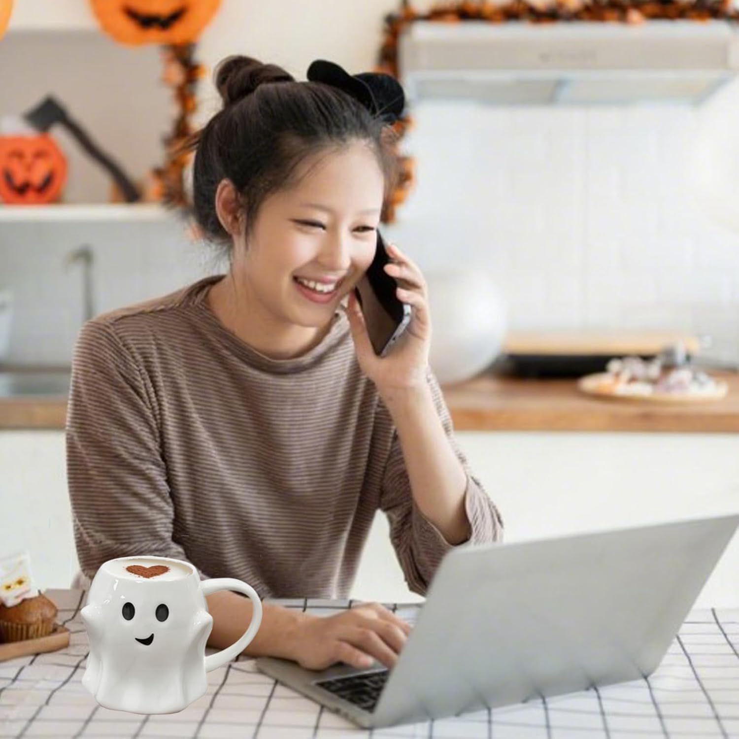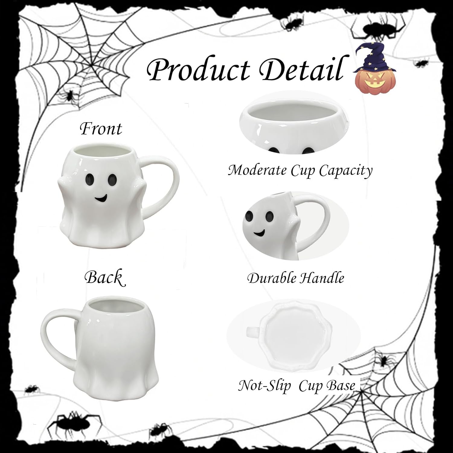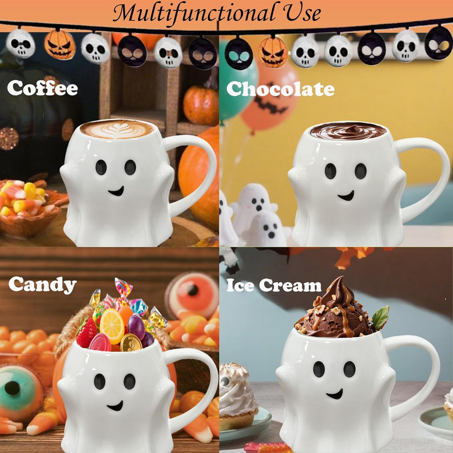 HS&ROXIN Halloween Ghost Mug 3D Cute Ghostface Novelty Coffee Mug Spooky Ceramic Ghost Cup Halloween Christmas Birthdays Party Gifts and Decorations for Kids Adult (White)