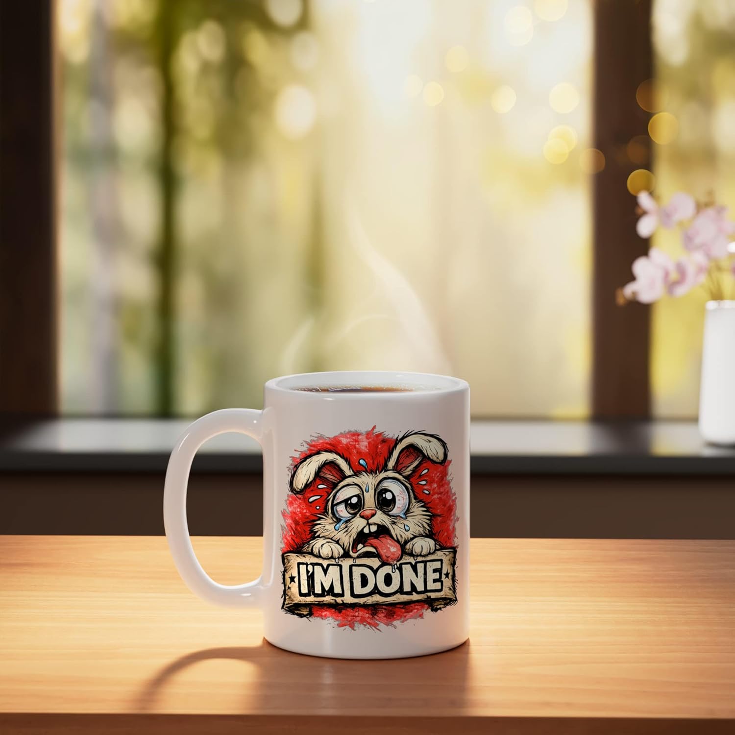 I’m Done Bunny Funny Shocked Bunny-Meme Design Ceramic Mug, White
