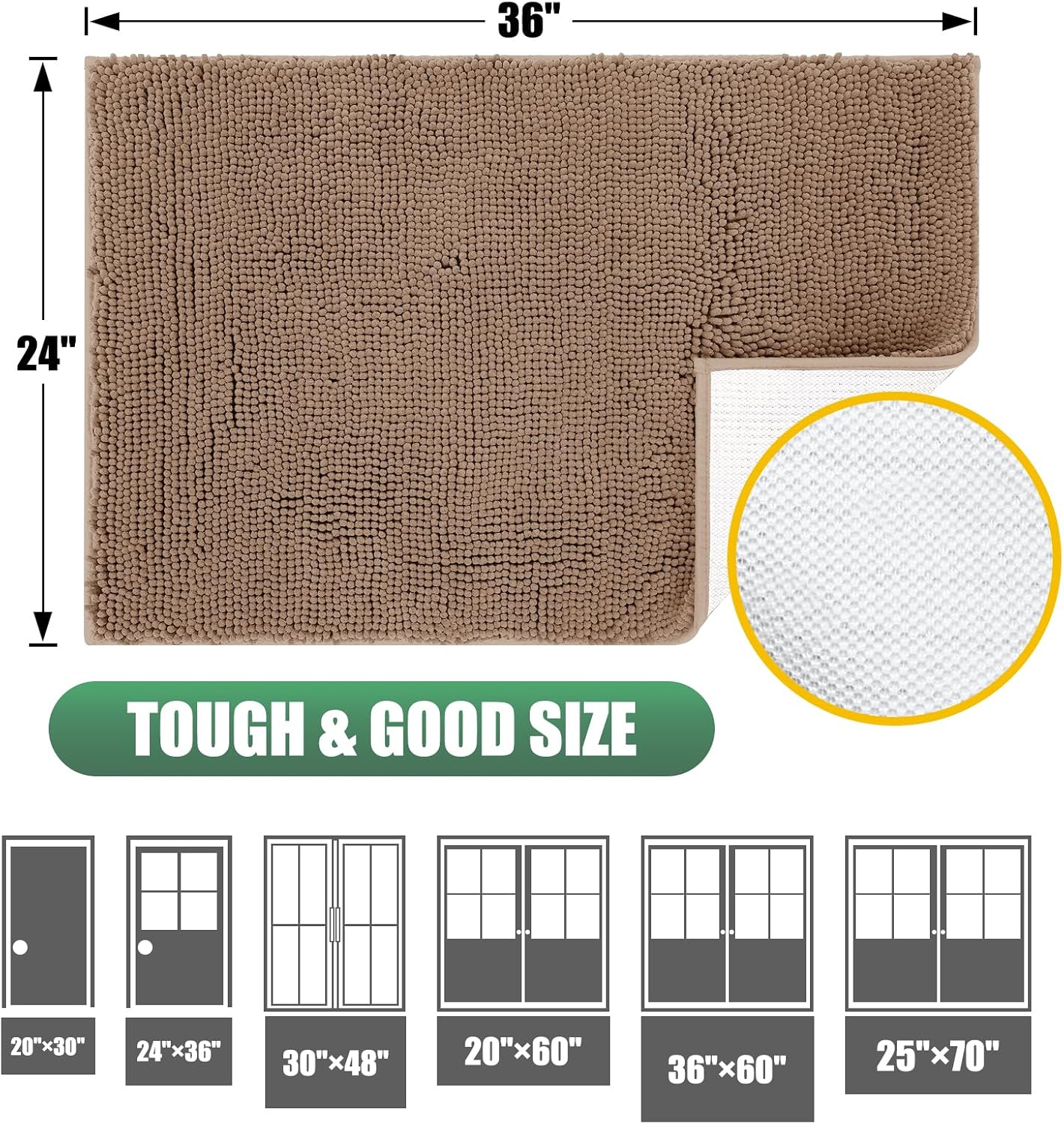 IM HOME Chenille Absorbent Outdoor Doormat 36″ x 24″, Washable Muddy Door Mats for Dog Non Slip Indoor Doormat Dog Mat for Muddy Paw Front Inside Doormats for Entryway Camel
