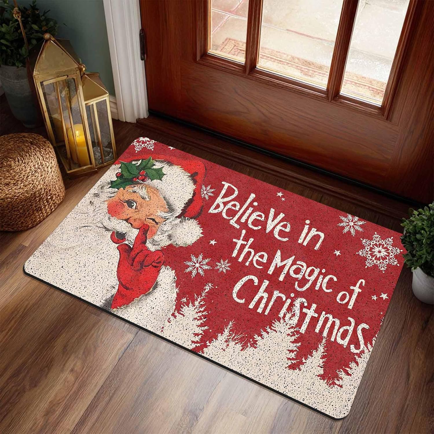 Great indoor/outdoor Christmas decoration! High Quality Material Door mats are made of high-quality non-woven fabric surface. the back is made of non-slip recycled rubber.Color does not fade, not easy to damage. Size This Christmas doormat measures available in two sizes: 16 x 24 inches or 18 x 30 inches and has moderate thickness. Durable and Non-slip Backing High quality non-slip rubber backing and frictional surface prevents rug from bunching and shifting. Low-Profile Design This low profile design doormat is thin enough for most low-clearing doors or entryways, the door will open easily so forget about curling or getting stuck. Our door mat is a good choice for low-clearing doors or entryways. The Best Christmas Decorations Just for you to create unique Christmas decorations. They will be the perfect choice to add Christmas festive atmosphere to yours! Occasion It is suitable for indoor and outdoor scenes such as doorways, living rooms, bedrooms, porches, kitchens, balconies, offices, etc. Easy to Take Care Supports hand wash and machine wash, just shake off the mat before washing or use a vacuum cleaner to remove mud and debris.