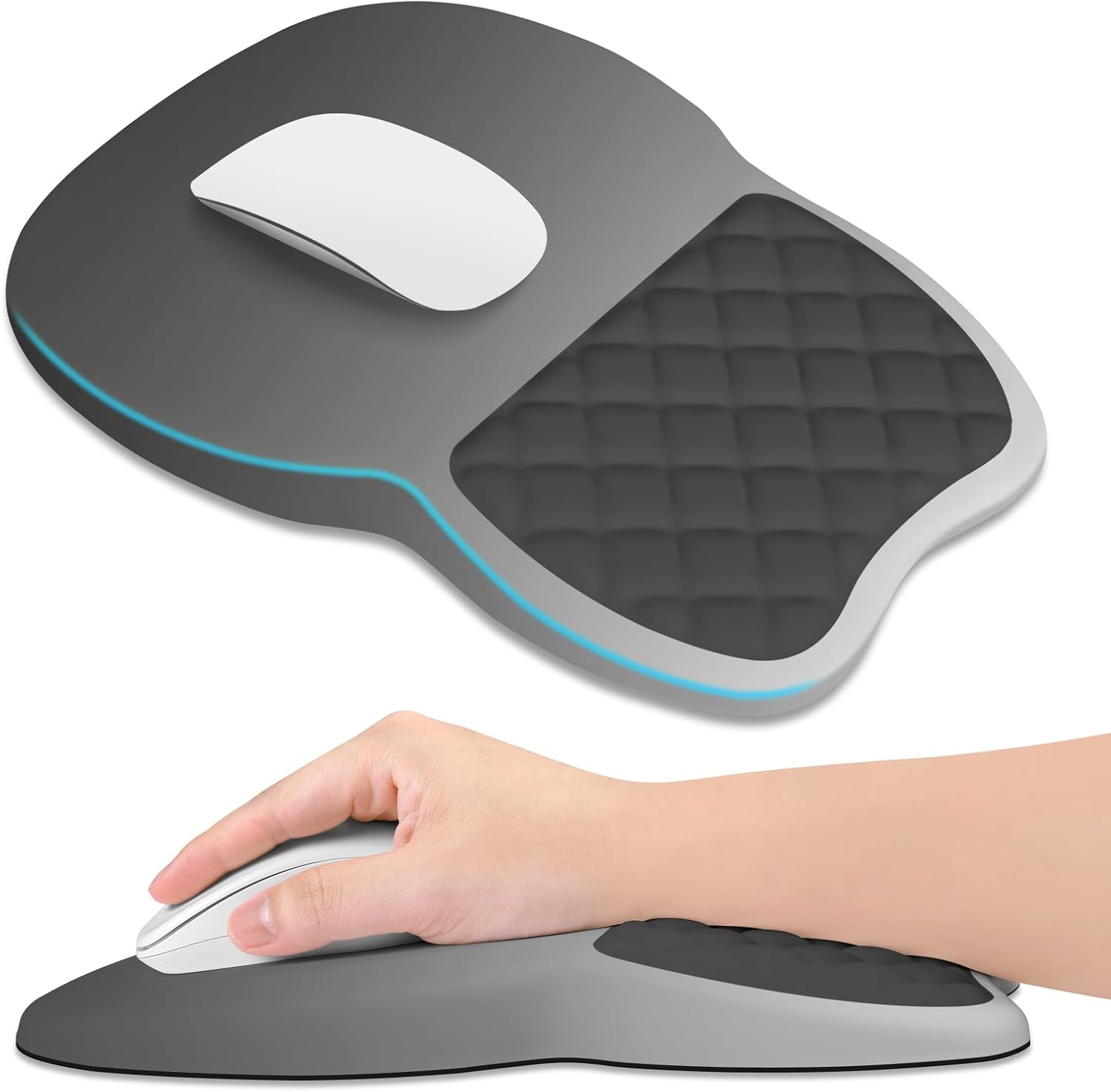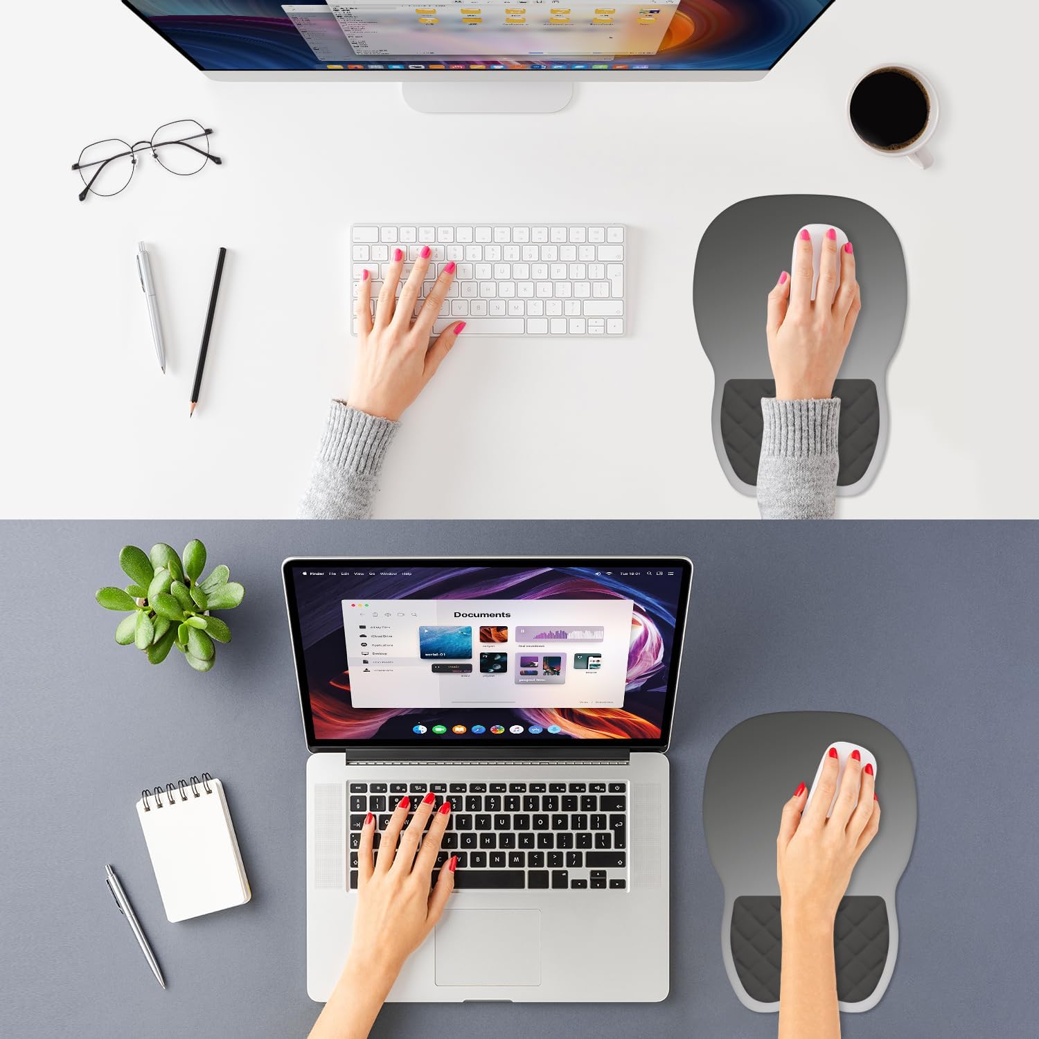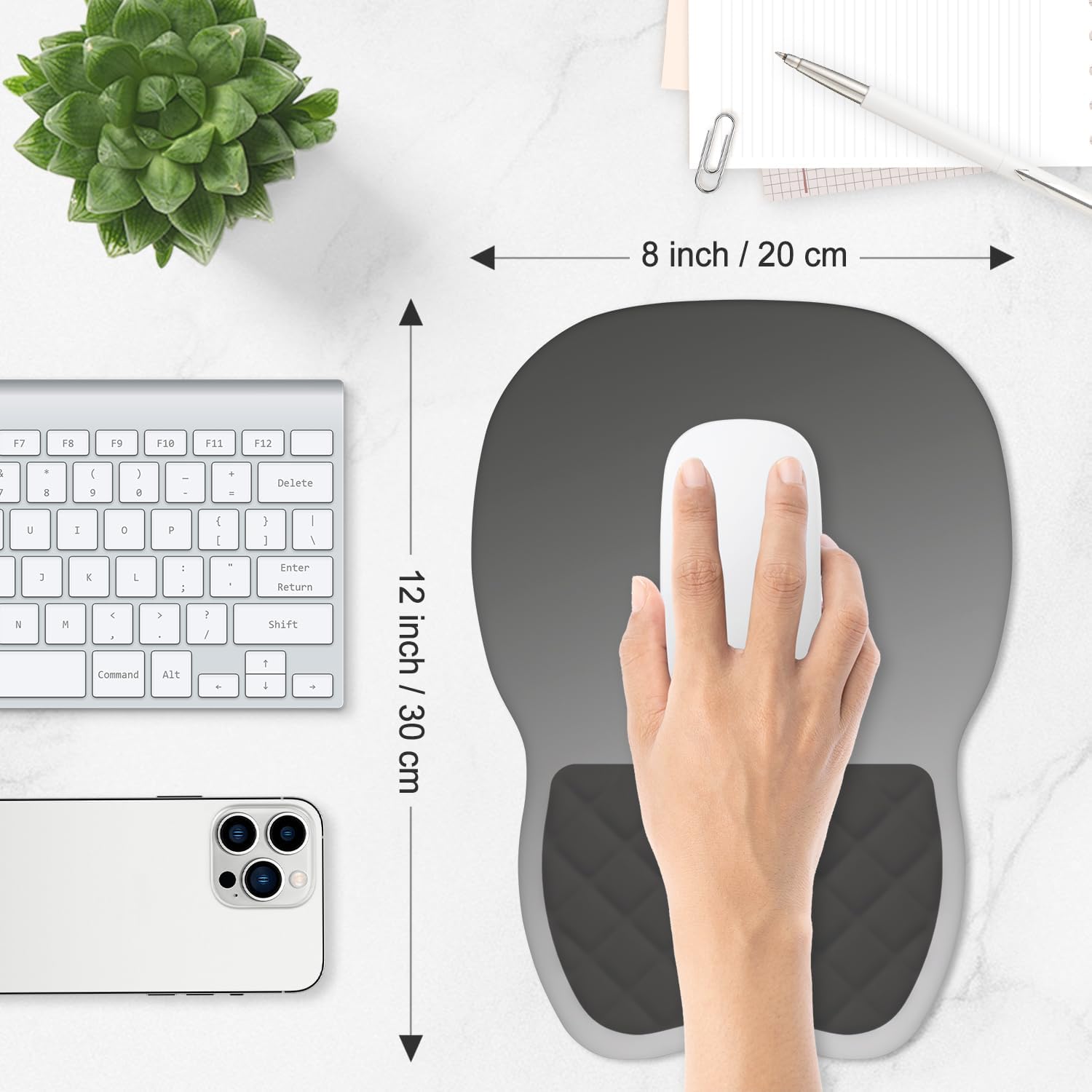 ITNRSIIET Ergonomic Mouse Pad Wrist Support with Memory Foam Massage Bulge & Non-Slip PU Base, Carpal Tunnel Pain Relief, Prevent Wrist Sweating, 12 x 8 x 1.2 inch, Gray Gradient