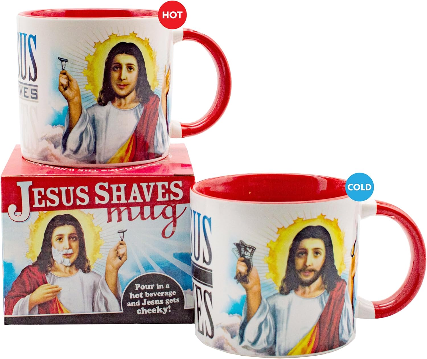 Jesus Shaves Disappearing Coffee Mug – Add Hot Water and Jesus’ Beard Disappears – Comes in a Fun Gift Box – by The Unemployed Philosophers Guild