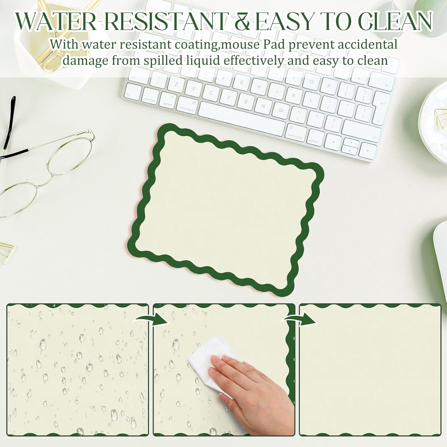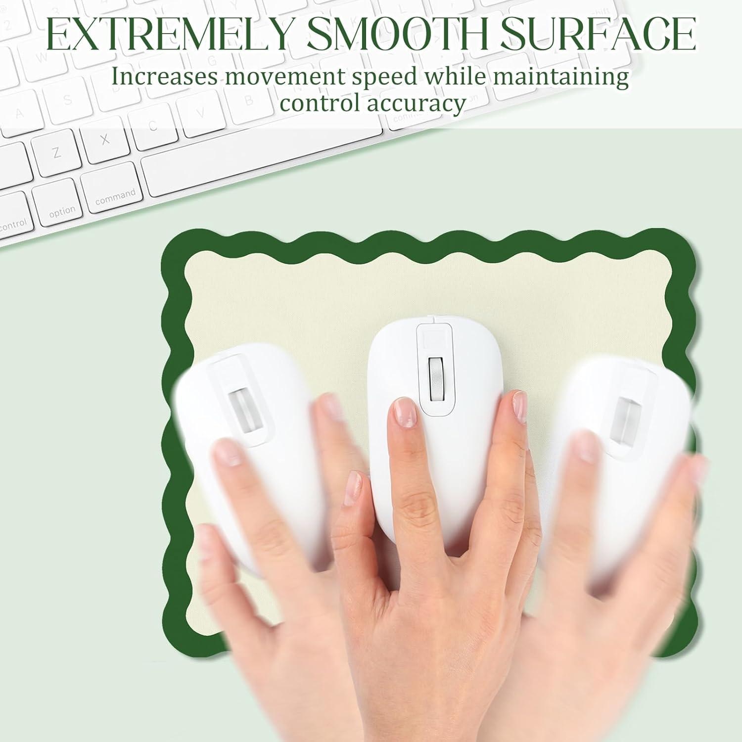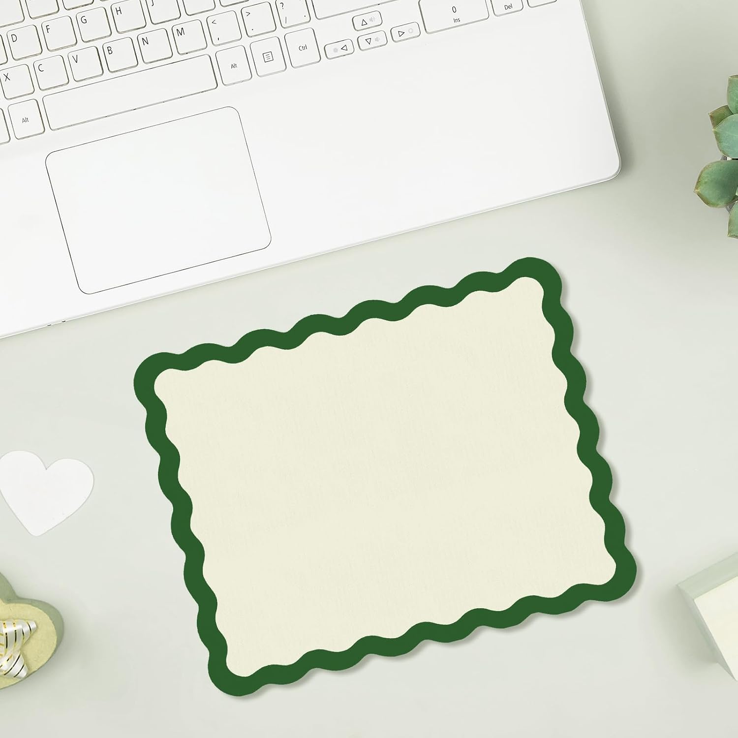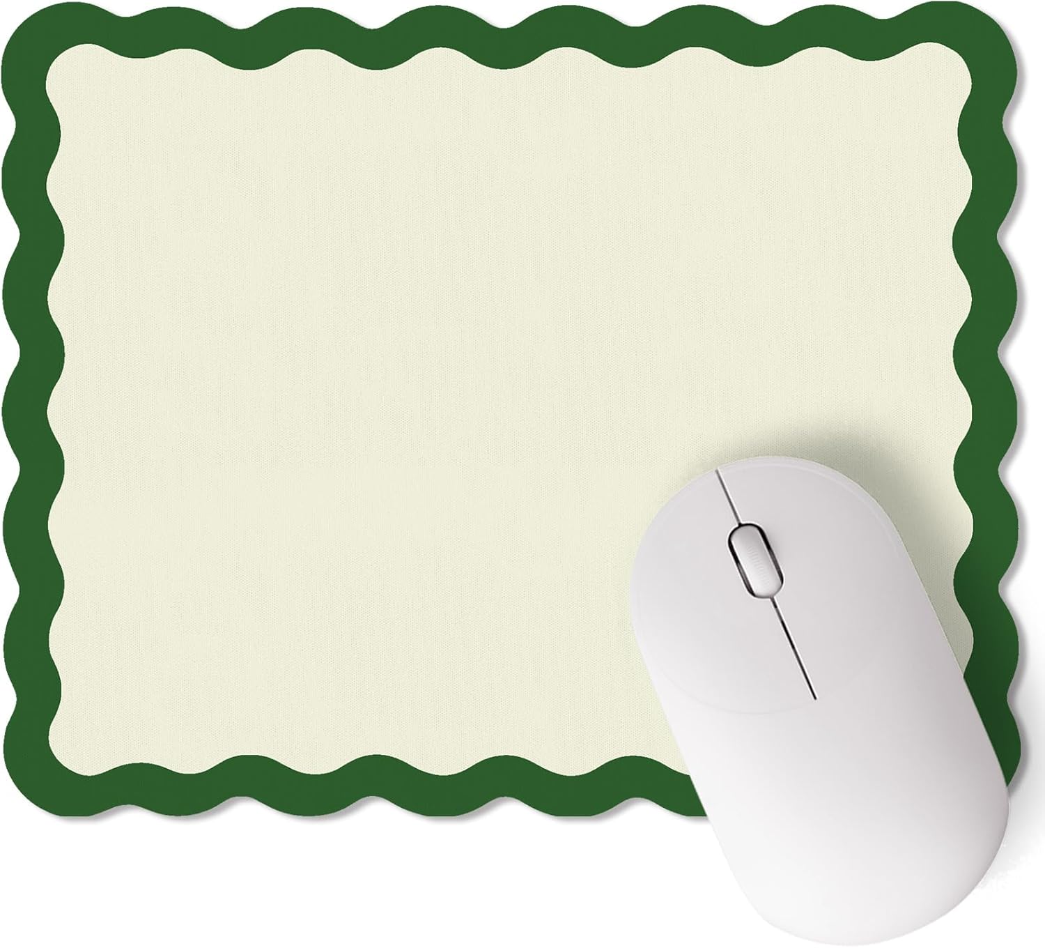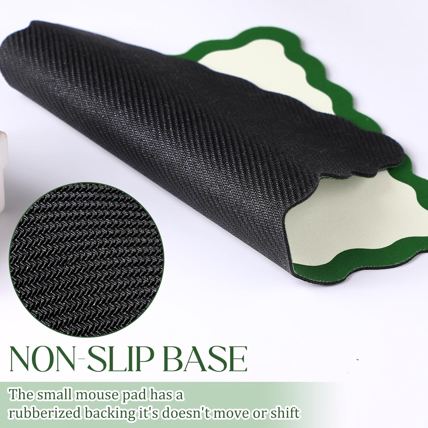 Kingdder Small Cute Kawaii Mouse Pad Green Scalloped Mousepad – 9.8 x 7.9 Inches Non-Slip Rubber Base with Waterproof Fabric Surface Computer Accessories for Travel, Desk, Office, Gaming & Home Decor