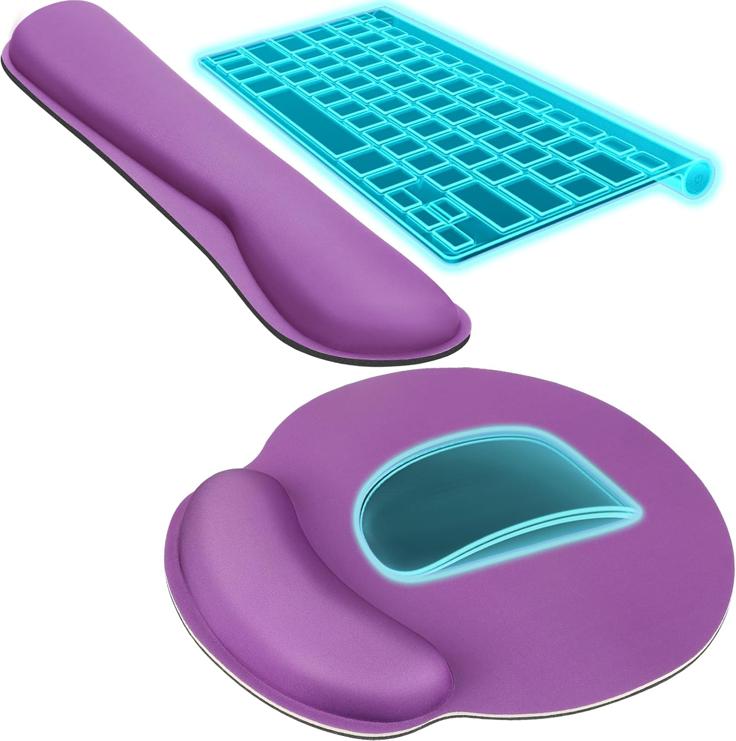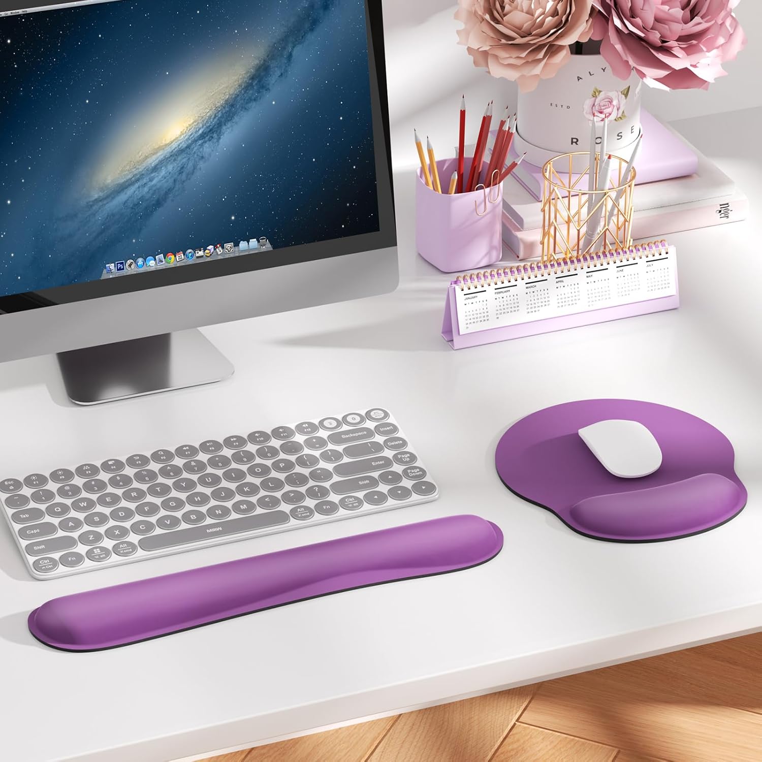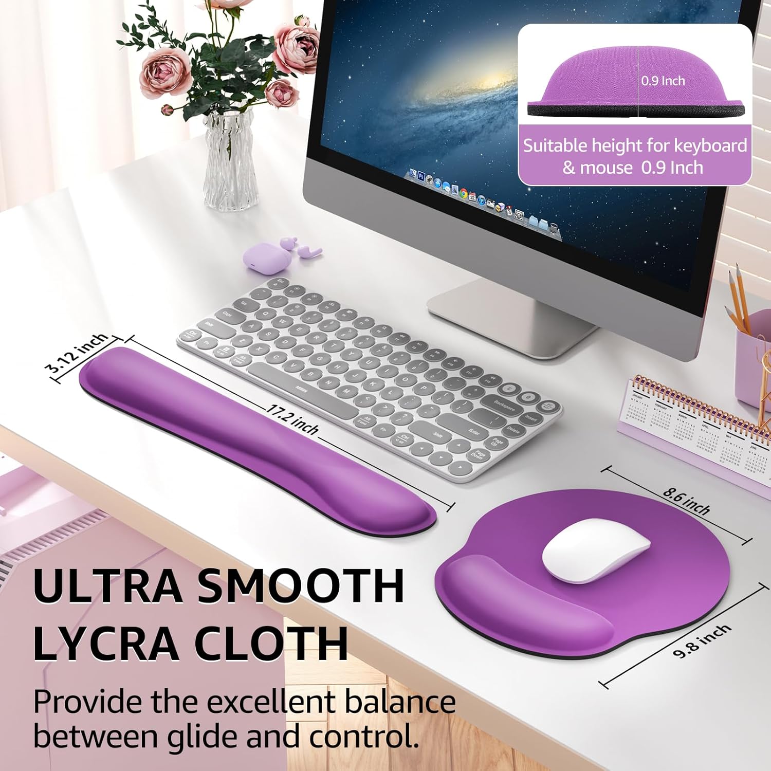 KTRIO Ergonomic Keyboard Wrist Rest and Mouse Pad with Wrist Rest Set, Memory Foam Wrist Support for Typing, Gaming, Office and Home Use, Pale Pink, Violet Purple