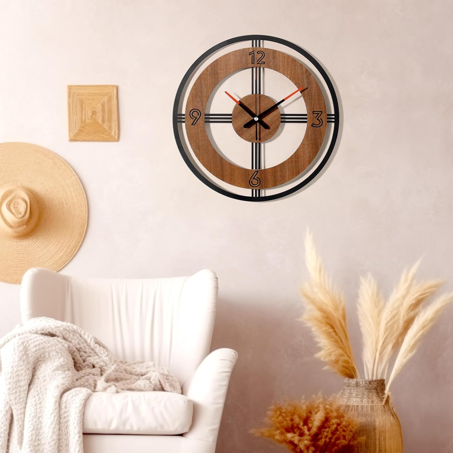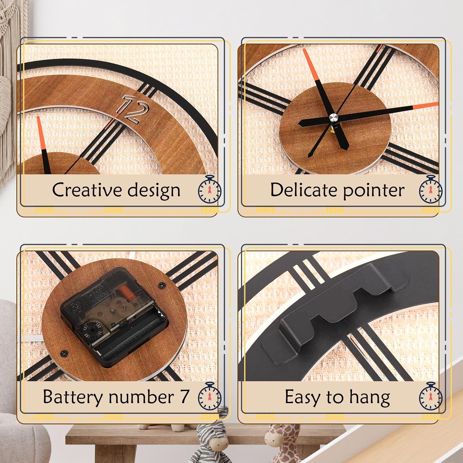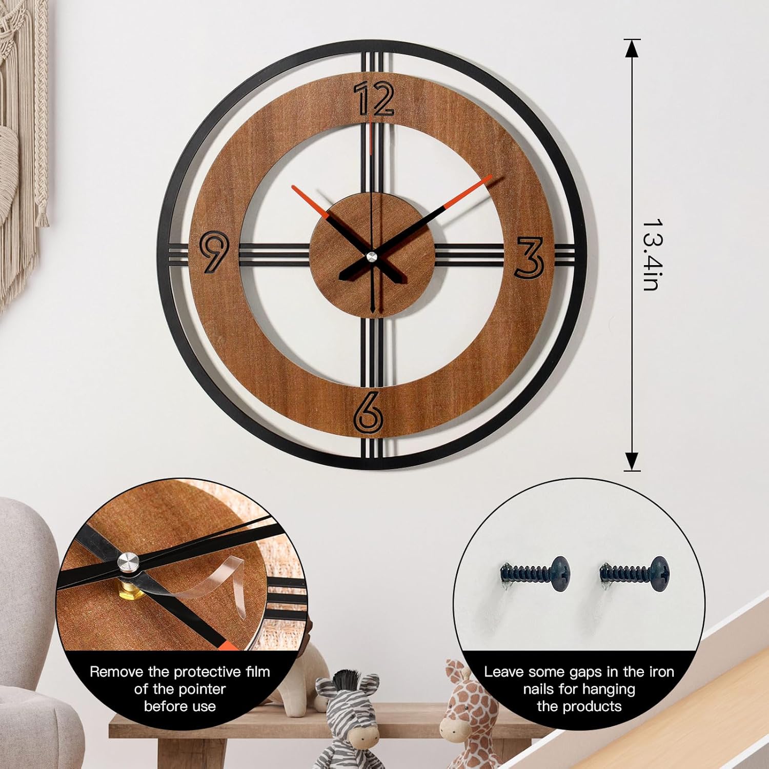 Large Wall Clock Decorative Wall Clock Round Kitchen Clock Farmhouse Kitchen Decor Rustic Clocks for Walls Farmhouse Silent Clock for Living Room Decor (Rustic)