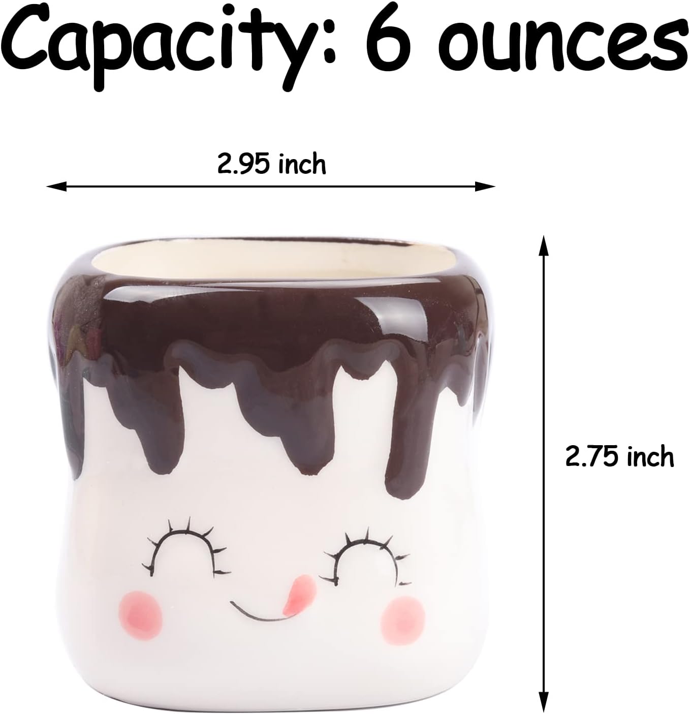 Are you still looking for cute gifts for women, children or to make your family more warm? look no further! Our marshmallow mugs can perfectly solve this problem! Why choose our marshmallow mugs? Our cute marshmallow mugs can make a great gift for kids, children, girls or women. They will love this cute mug and use it everyday! Our marshmallow mugs are great home decoration for Birthday, Christmas, Halloween and daily life. In summer you can put ice cream in them which can add more flavor to the ice cream. In winter you can put hot cocoa or hot coffee in it to let winter not cold. Use our marshmallow mug in the morning, look at their lovely smiling faces to start the day! Use our marshmallow mugs to drink a cup of warm milk at night, make the dream sweeter. SPECIFICATION: Material: Ceramic Capacity: 6 Oz Color: White with smile face Condition: New Size: Quantity: 4 Marshmallow Mugs WARM NOTICE: Dishwasher safe but microwave not safe. Ceramic products, hand wash recommended. ABOUT US: We make this marshmallow mug with our heart, we hope our cute marshmallow mug set can make your kids happy and make your home more cozy.