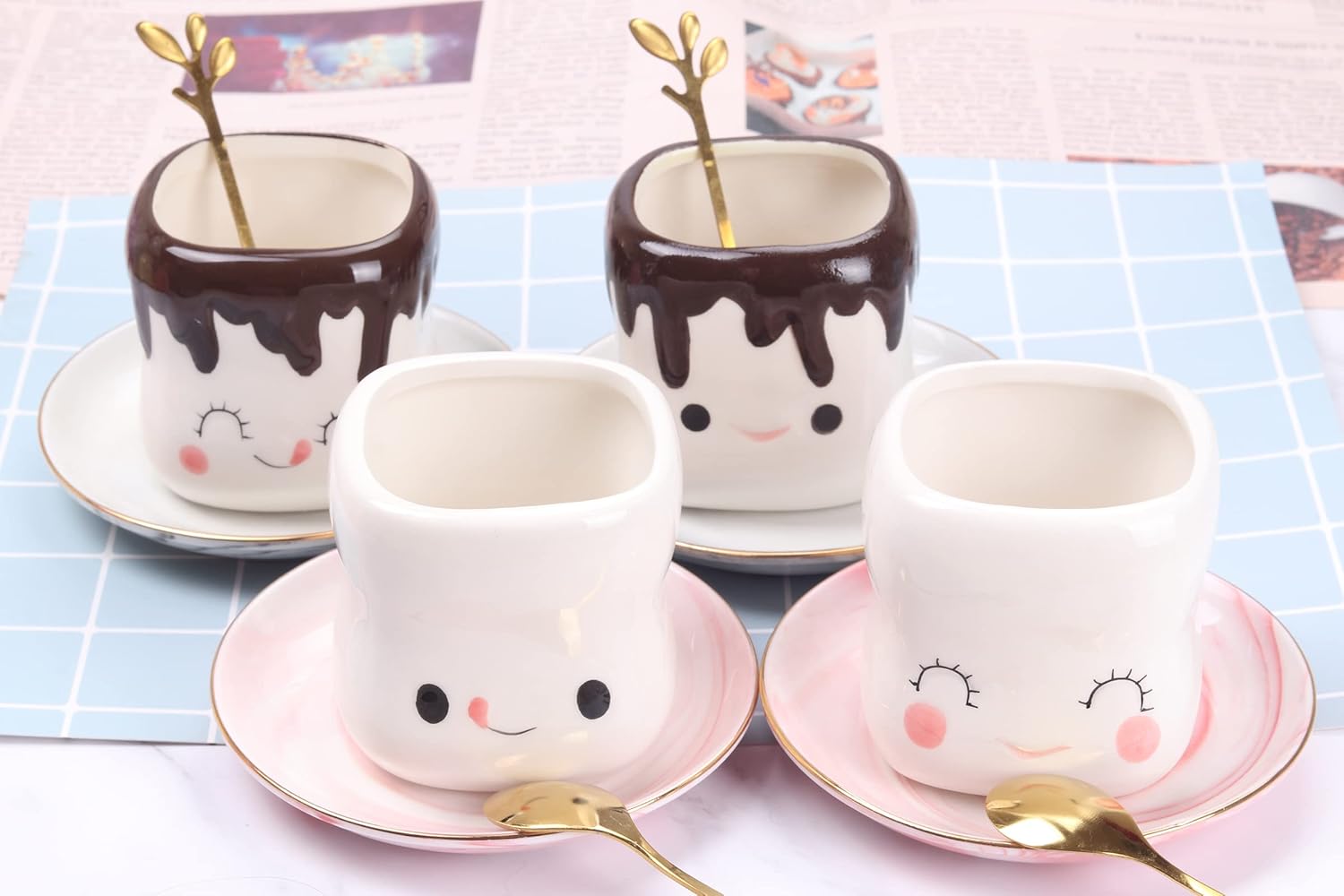 Marshmallow Mugs Set of 4 Cute Marshmallow Cups for Kids Hot Chocolate Cocoa Mugs Gifts for Kids Women Christmas Mother’s Day Cute Mug 6OZ