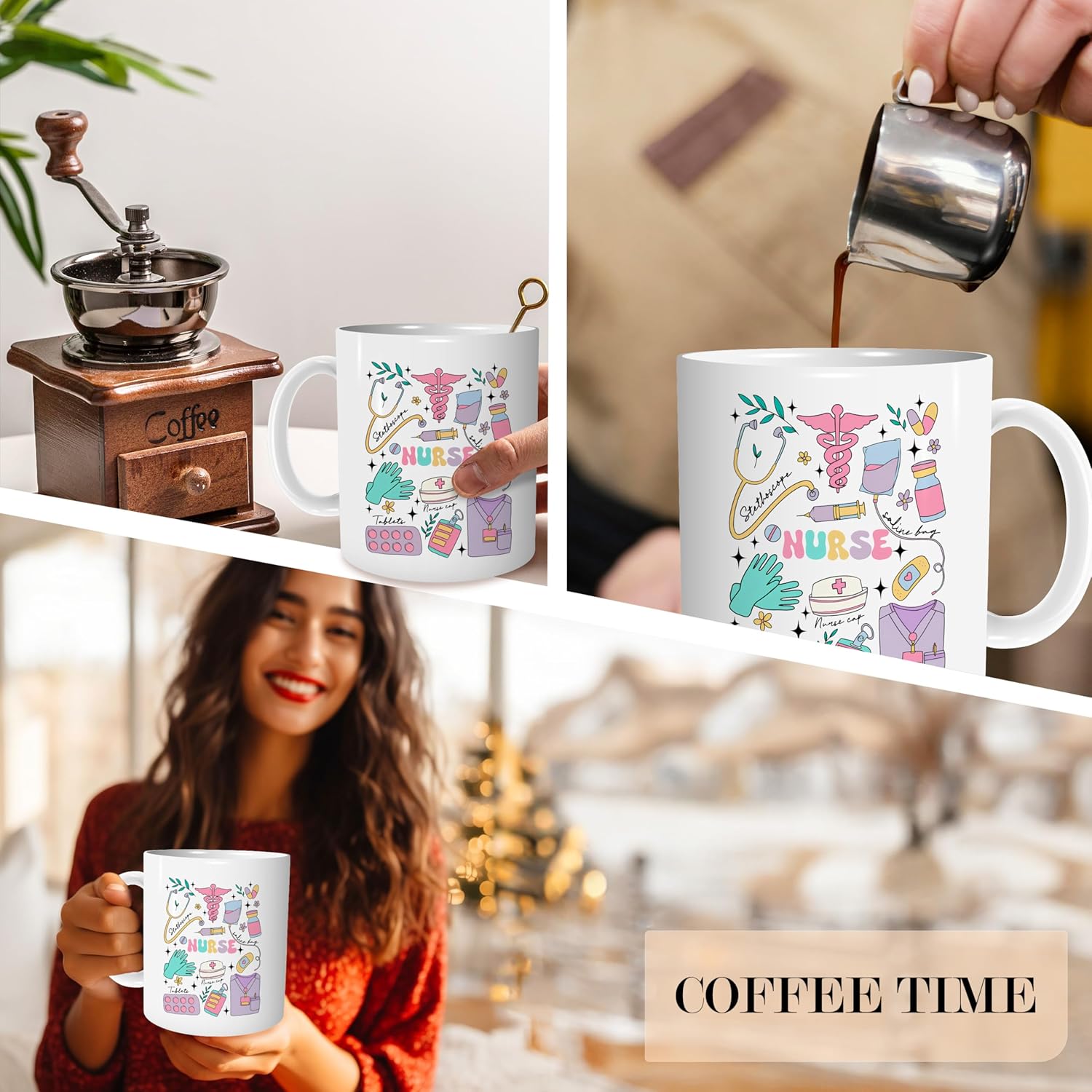 Nurse Coffee Mug Cup, Nurse Appreciation Gifts, Nursing Nurses Day Week Gifts for Women, Trendy Nursing Supplies Ceramic Coffee Mug 11 oz