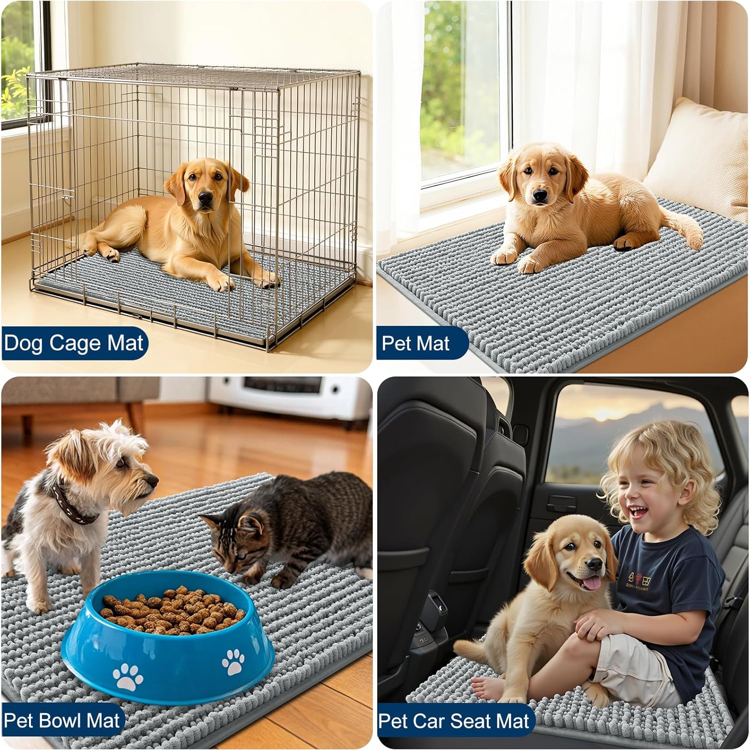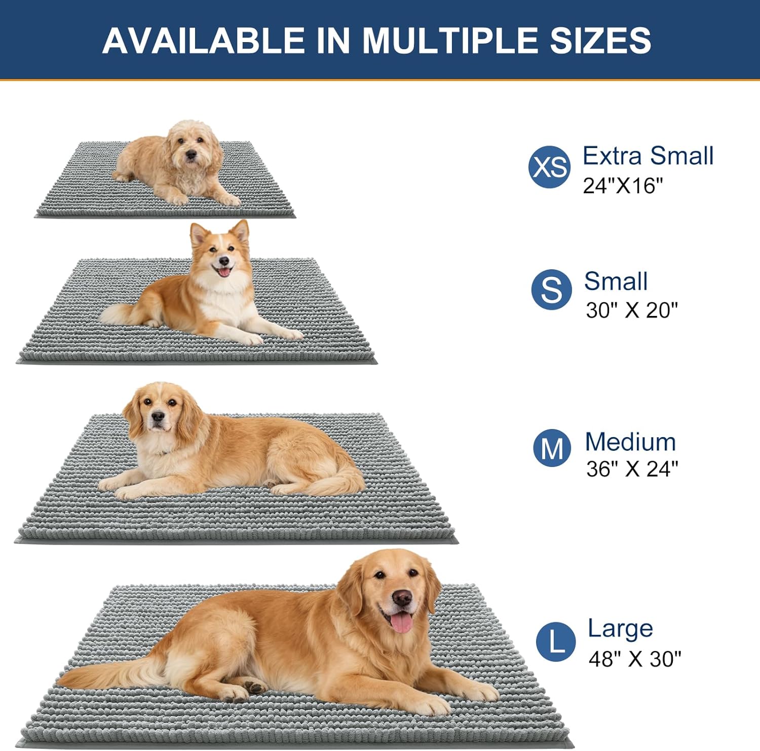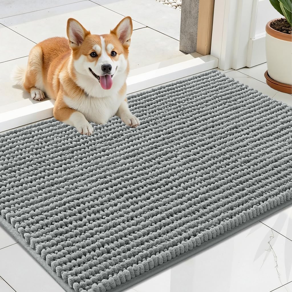 OLANLY Dog Door Mat for Muddy Paws 24×16, Ultra Absorbent Chenille Mud Doormat, Non-Slip Washable and Dirt Trapping Doormat for Indoor Entryway, Quick-Dry Indoor Pet Bed Mats for Dogs, Grey
