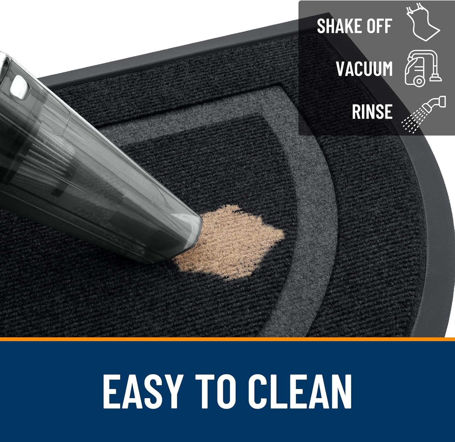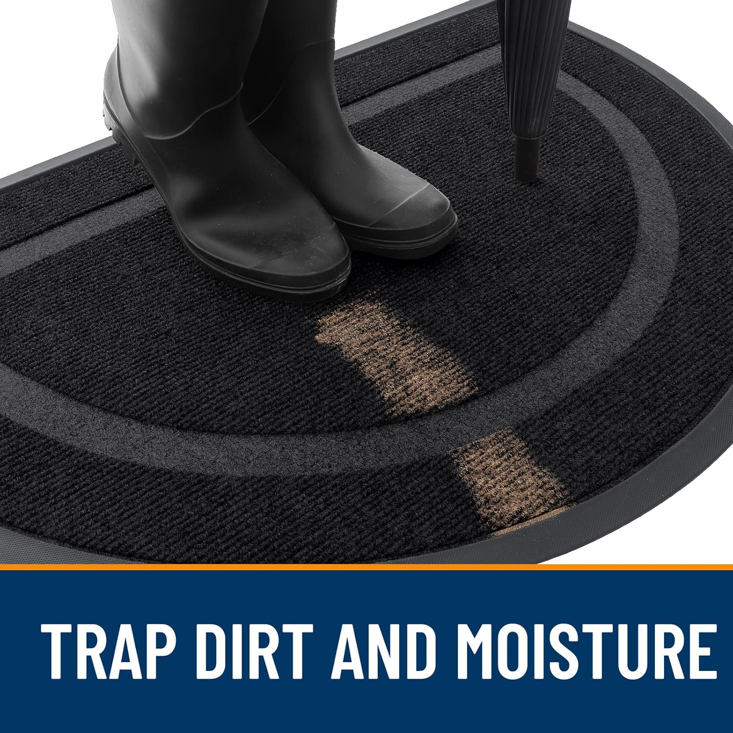 OLANLY Half Circle Door Mat Indoor Outdoor Entrance Welcome, Waterproof All-Season, All-Weather Doormat, Sturdy Natural Rubber, Low Profile, Easy Clean Patio Porch Entryway Mat, 29.5×17, Black