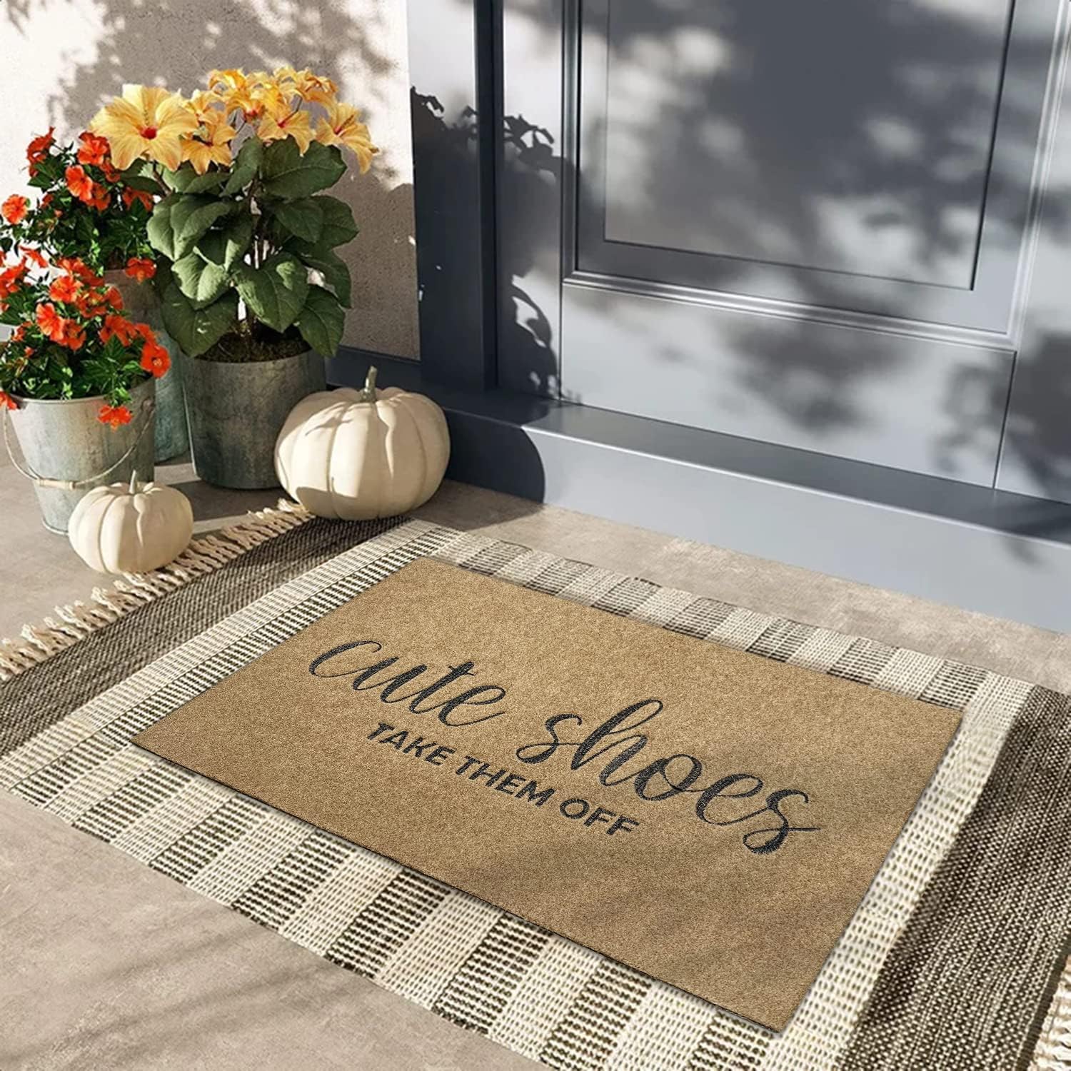 Outdoor Indoor Doormat Durable Floor Mat Heavy Duty Durable Door Mats Non Slip Rug Easy Clean Front Doormat for Garage Entryway Patio High Traffic Areas Brown