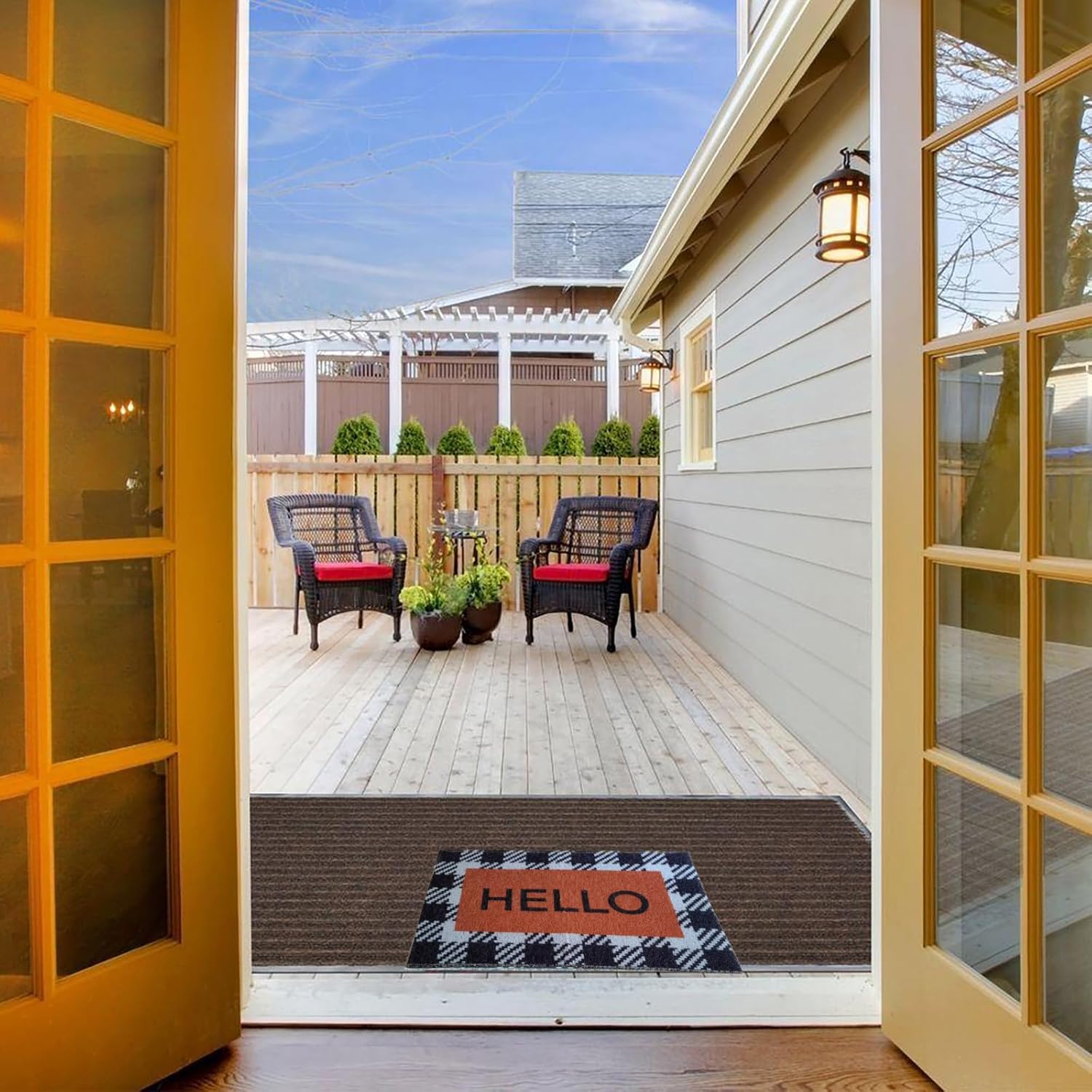 PANSHA Entryway Hello Welcome Door Mat 16 x 24 Inch, Non Slip Doormat Outdoor Entrance, Durable Dirt Trapper Floor Mats Suitable for Front Door Outdoor Outside Home Patio Garage High Traffic Entry