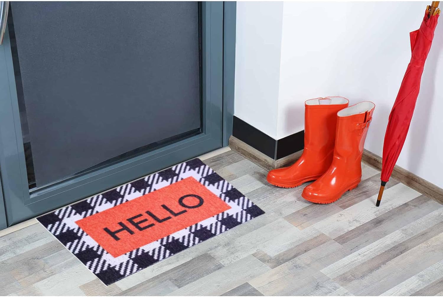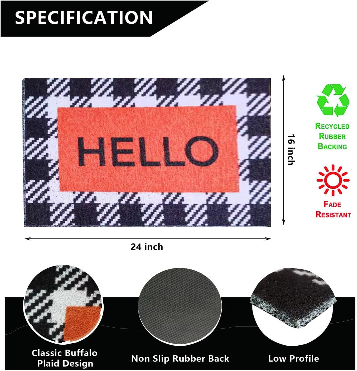 Handsome Addition to Entryway This classic buffalo plaid doormat is a fantastic way to add a cheering and welcoming touch to any entryway of home, apartment, office, living room, patio, garden, laundry room, kitchen etc. Suitable funny welcome mat for front door, floor mats for house, thin rug for under door indoor, kitchen door mat, front door mat outdoor, funny thin door mat indoor, low profile waterproof door mat, front porch mat, low profile mat for entryway, dog mat mud free pet mat, living room mat or a kitchen mat. Perfect fit for kids room mat, office mat and stairs. Safe for hardwood floors too. Entryway mat indoor non slip. Door mats for home entrance funny. Your visitors and guests as well as yourself will love the cute greeting font when step in for a visit. Our door and floor mats are designed and printed using permanent dye sublimation that provides the mat long lasting color. Durable Design Doormats feature a non-skid rubber backing that is low-profile to reduce chances of tripping and allow door to pass over easily. Quality Construction They are made from a high-quality construction and are fade and stain resistant. Standard Size Doormats are 16″ x 24″ and fit for most doorways. A nice addition to your indoor or outdoor decor. Our doormats make a beautiful addition to your indoor or outdoor entryways, garden, living room, kitchen spaces.