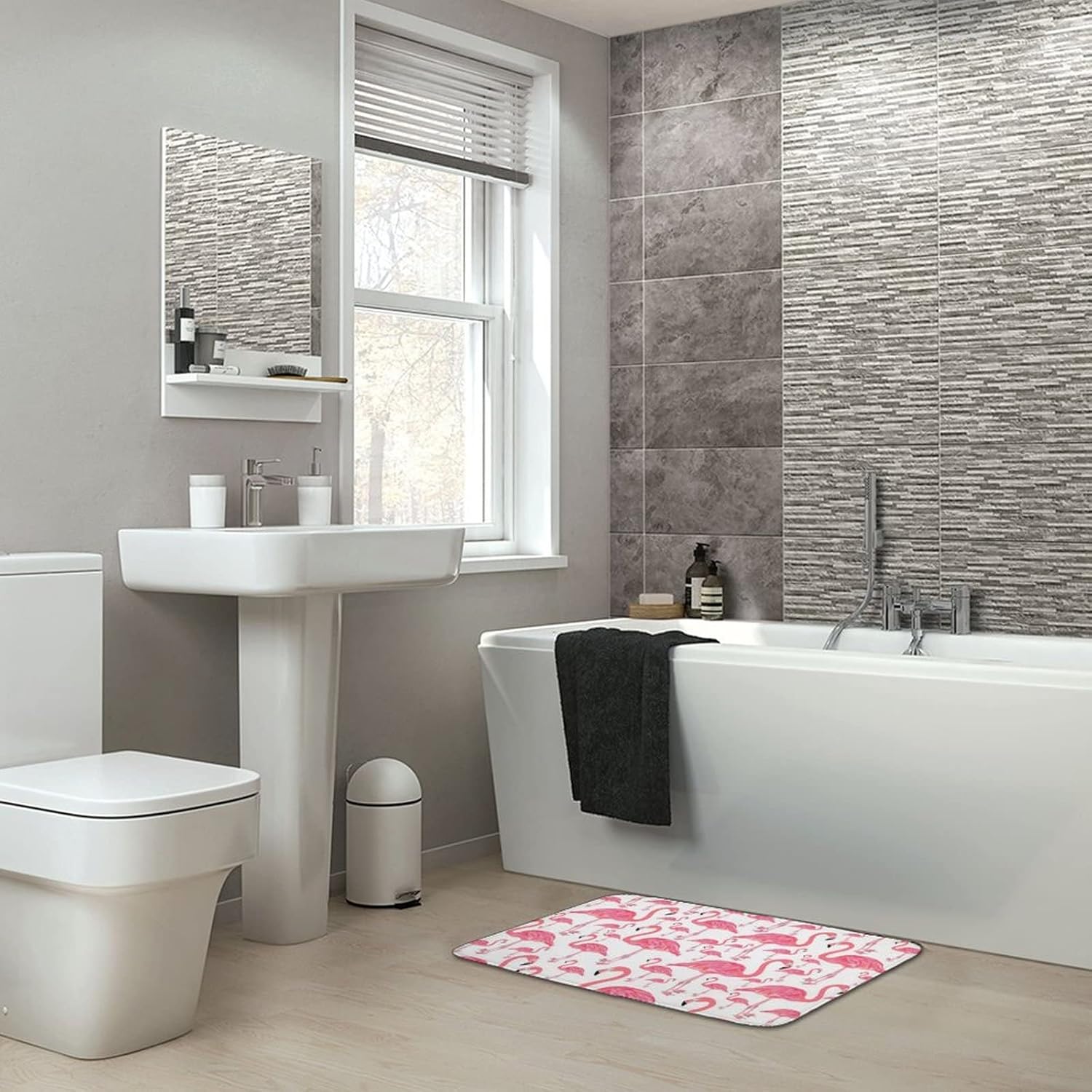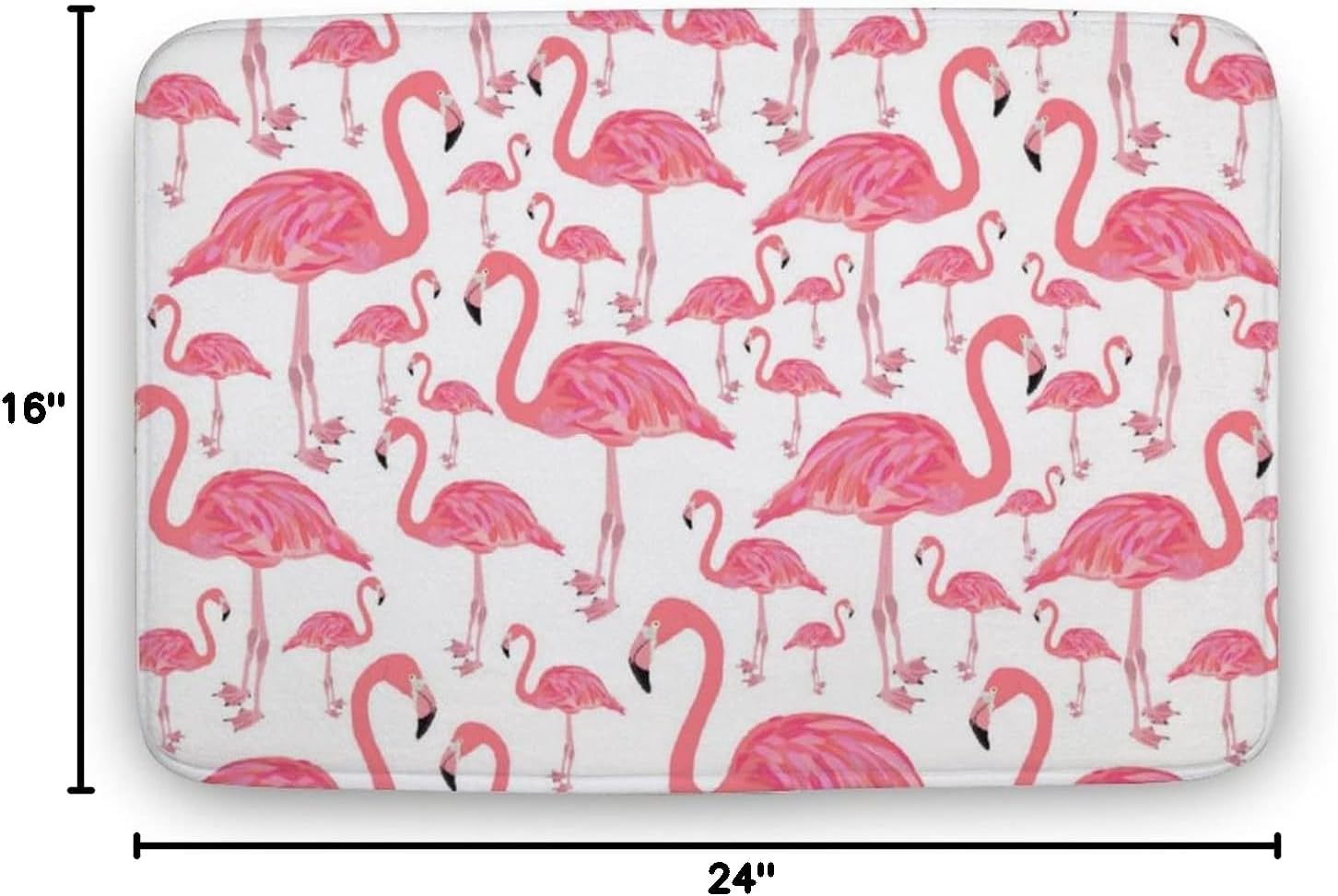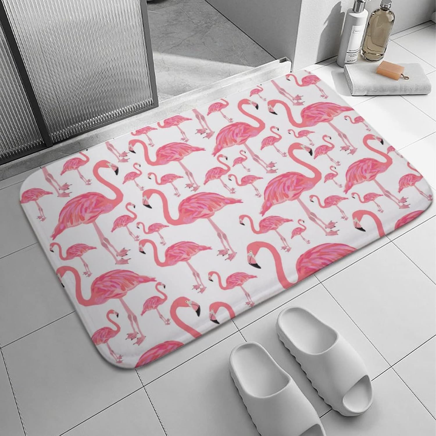 Pink Flamingo Bird Bathroom Rug Mat, Extra Soft and Absorbent Microfiber Bath Rugs, Non-Slip Plush Bath Carpet, Bath Mats for Bathroom Floor, Tub and Shower 16″x24″