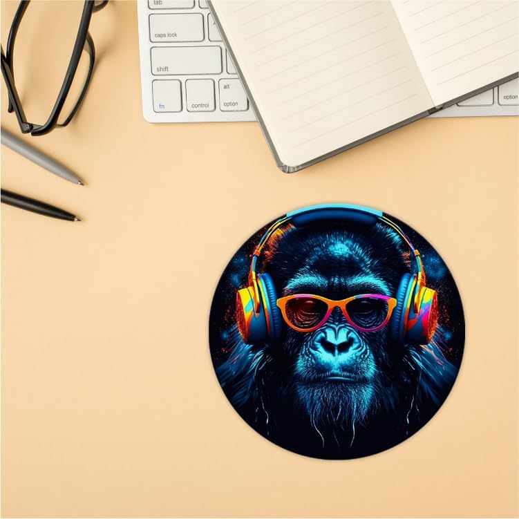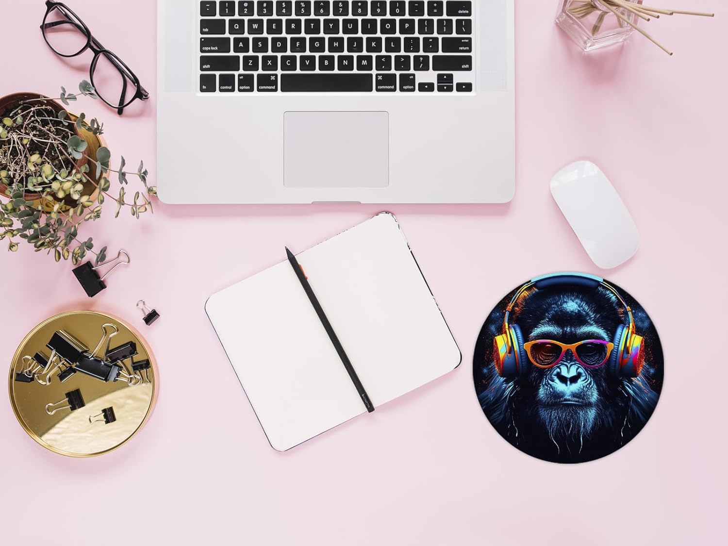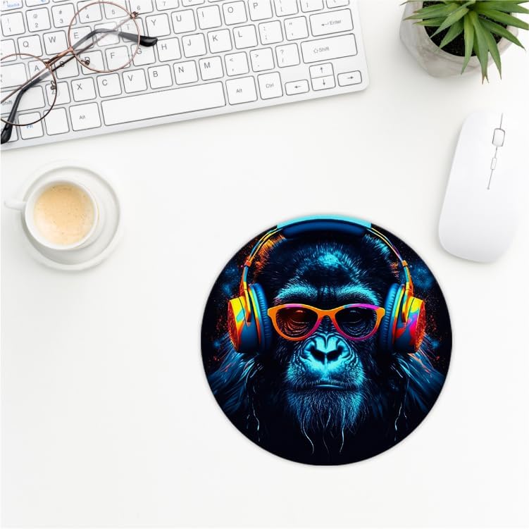 QUICQOD Gamer Monkey Mouse Pad,Trendy Teen Boy Gift,Game Lover Gifts,Round Mouse Pad,Non-Slip Rubber Base Mousepads for Home Office Dorm Desk Decor,8.7 x 8.7 Inch