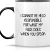 Retreez Funny Mug – I Cannot Be Held Responsible For What My Face Does When You Speak 11 Oz Ceramic Coffee Tea Mugs – Funny, Sarcasm, Sarcastic, birthday gifts – White Mug with Black Handle and Inner