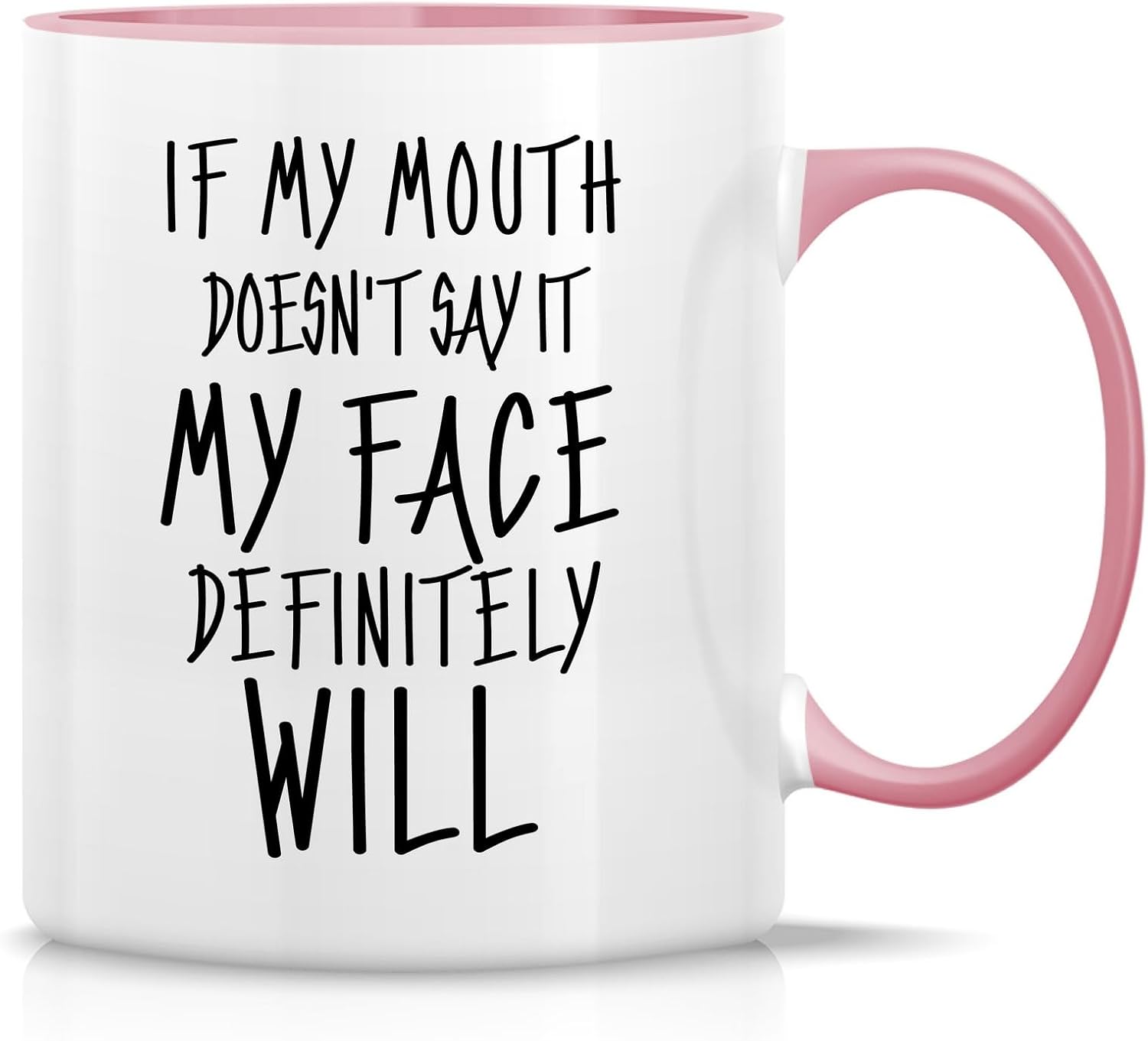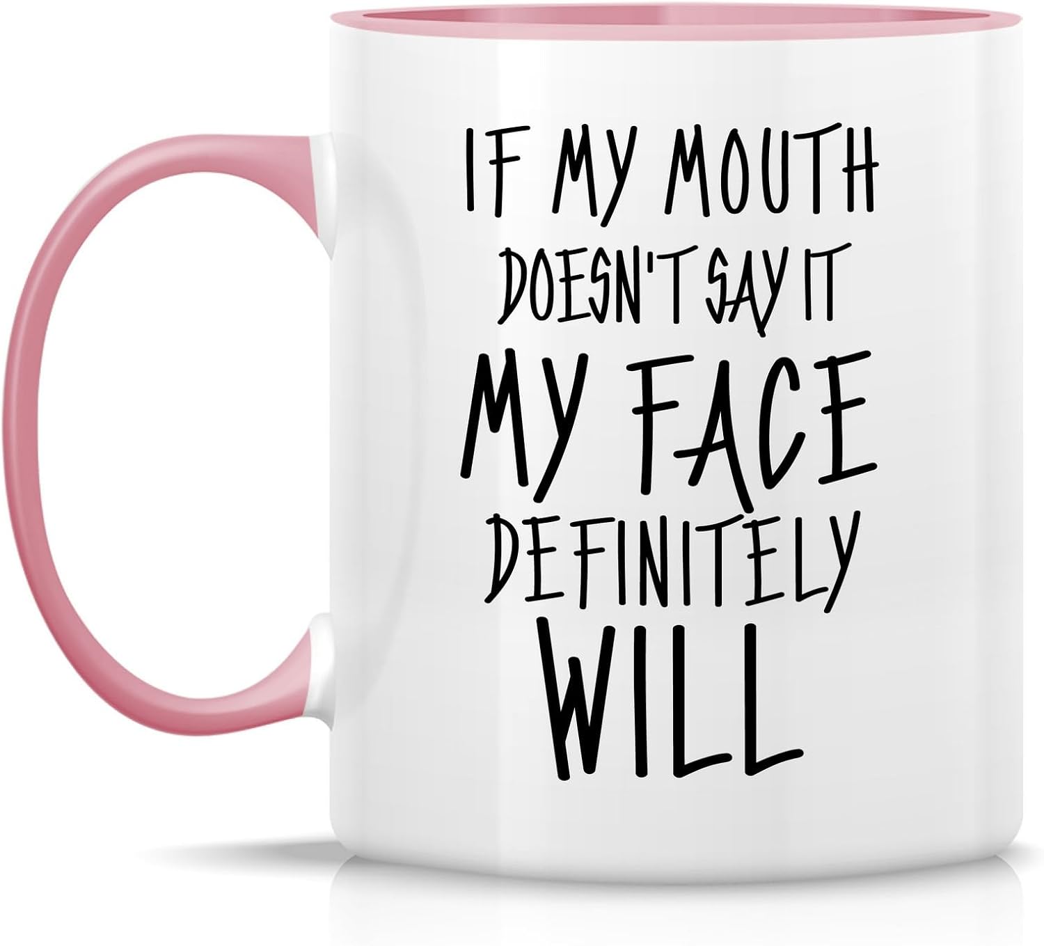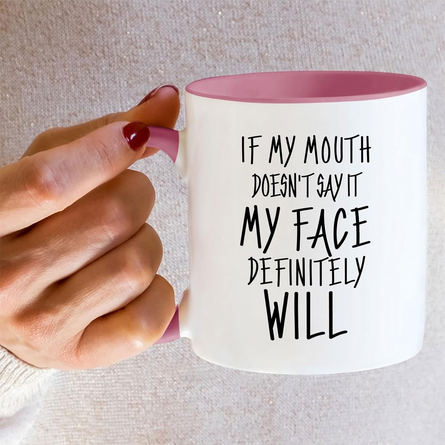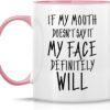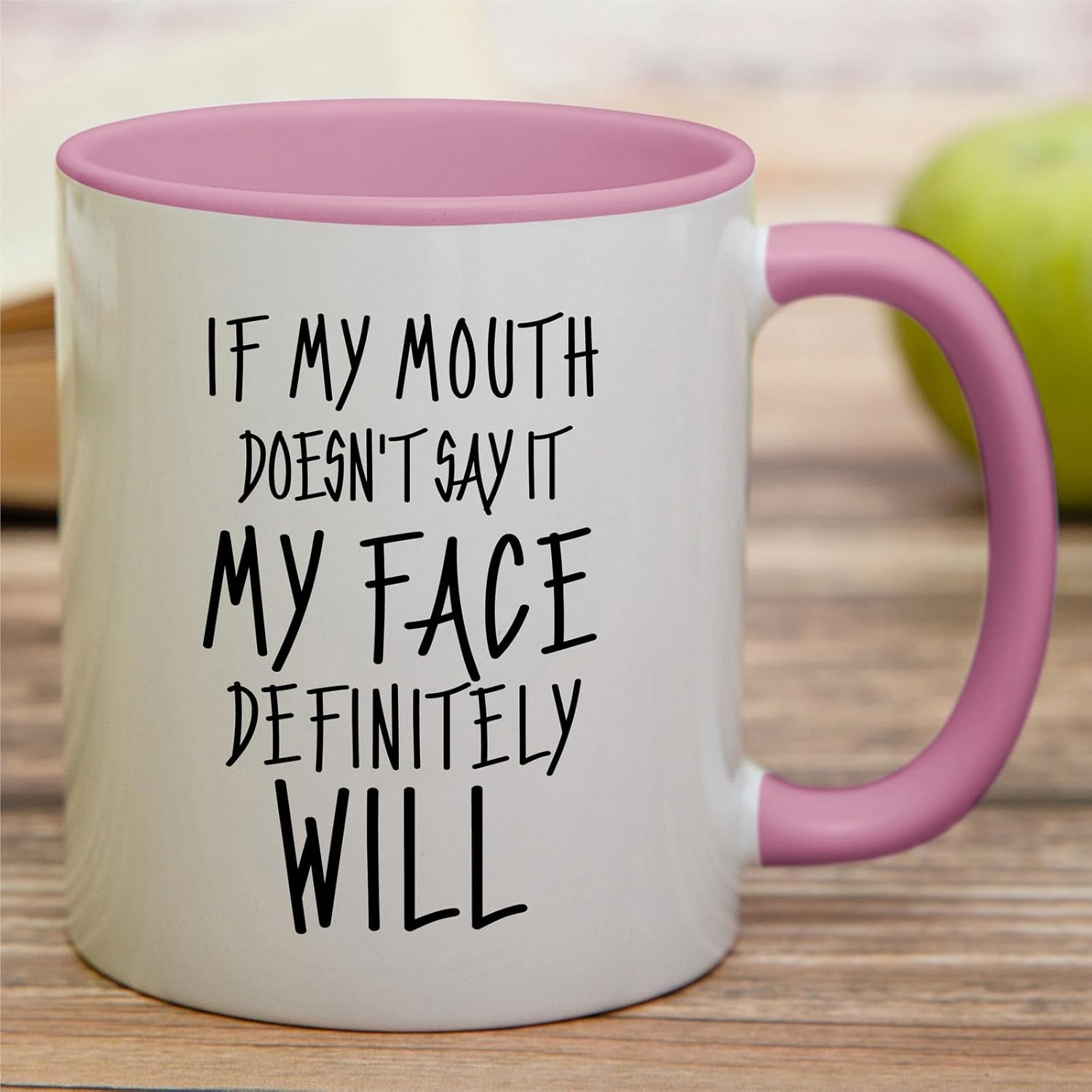 Retreez Funny Mug – If My Mouth Doesn’t Say It My Face Will 11 Oz Ceramic Coffee Mugs – Funny, Sarcasm Inspirational birthday gifts – White Mug with Pink Handle and Inner