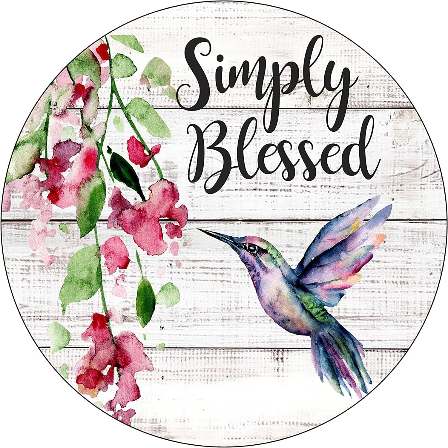 Retro Metal Tin Sign 12x12inch Simply Blessed Welcome Spring Sign Spring Wreath Attachment Hummingbird Floral Welcome Sign Round Wreath Sign Funny Wall Decor Nostalgic Arts Decor Home Decor