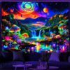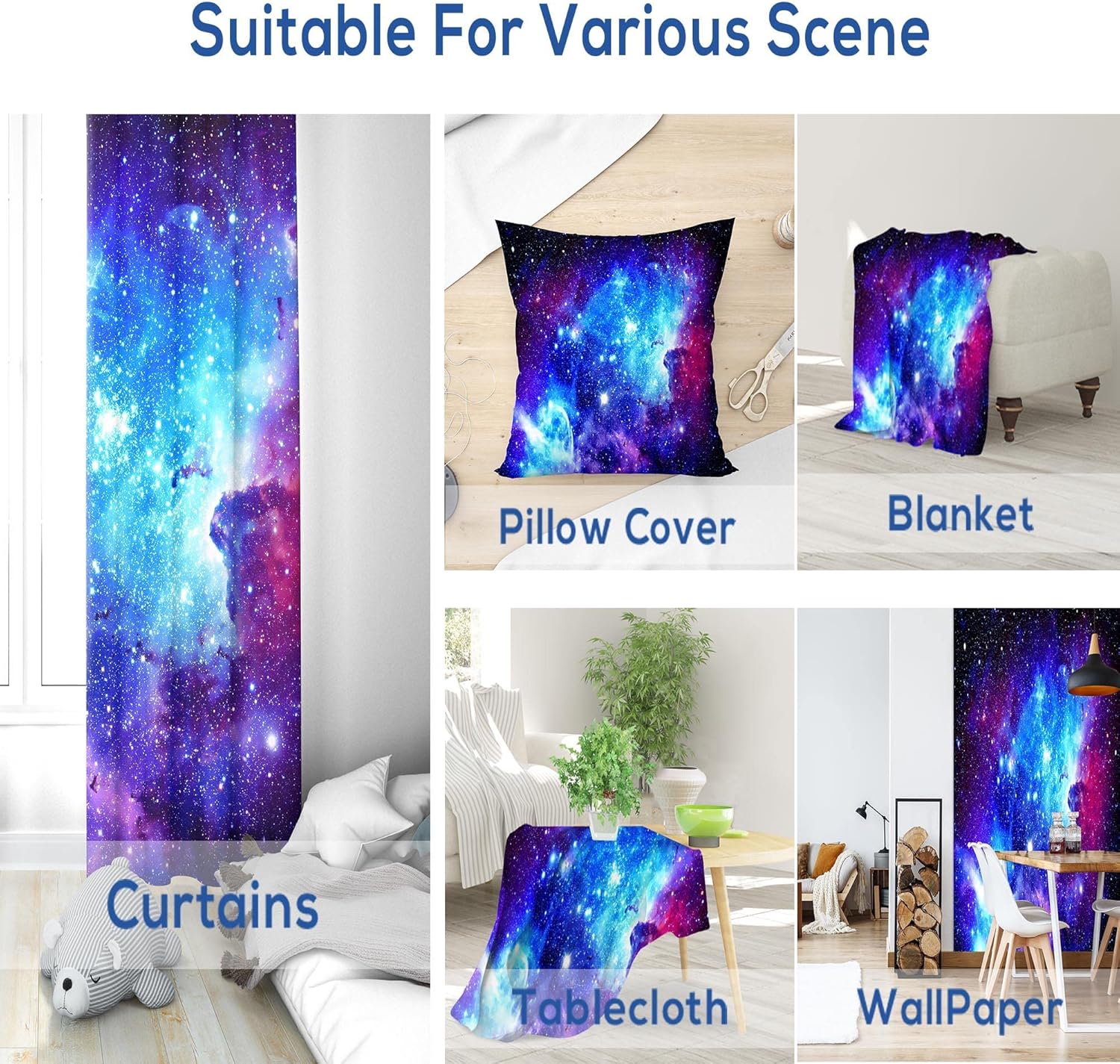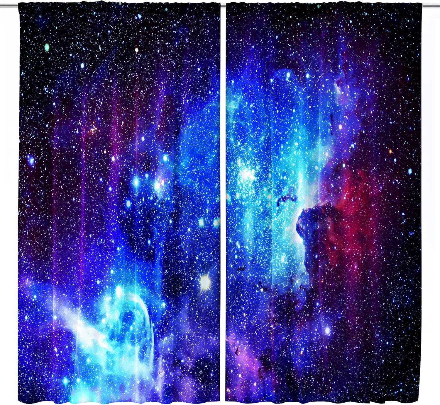 Riyidecor Galaxy Outer Space Nebula Curtains (2 Panels 42 x 63 Inch) Blue Rod Pocket Universe Planets Boys Fantasy Starry Black Art Printed Living Room Bedroom Window Drapes Treatment Fabric WW-CLLE