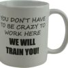 Rogue River Tactical Funny Novelty Coffee Mug- You Don’t Have to Be Crazy to Work Here We Will Train You Cup, Great Gift Idea for Employee, Boss and Coworker, 11 Oz, White