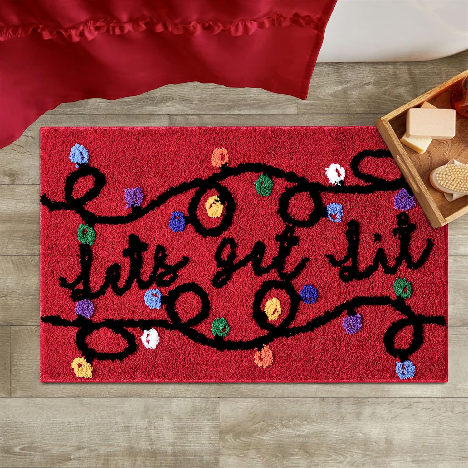 RoomTalks Let??s Get Lit Christmas Lights Bath Mat Non Slip Machine Washable, 16×24 Cute Red Cheer Festive Seasonal Xmas Holiday Bath Rugs Mat for Bathroom Christmas Decorations Gift