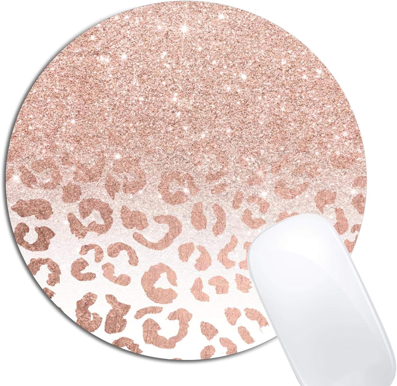 Rose Gold Glitter Ombre Mouse Pad Round Non-Slip Rubber Mousepad Laptop Office Computer Decor Cute Desk Accessories Customized Design Mouse Pad