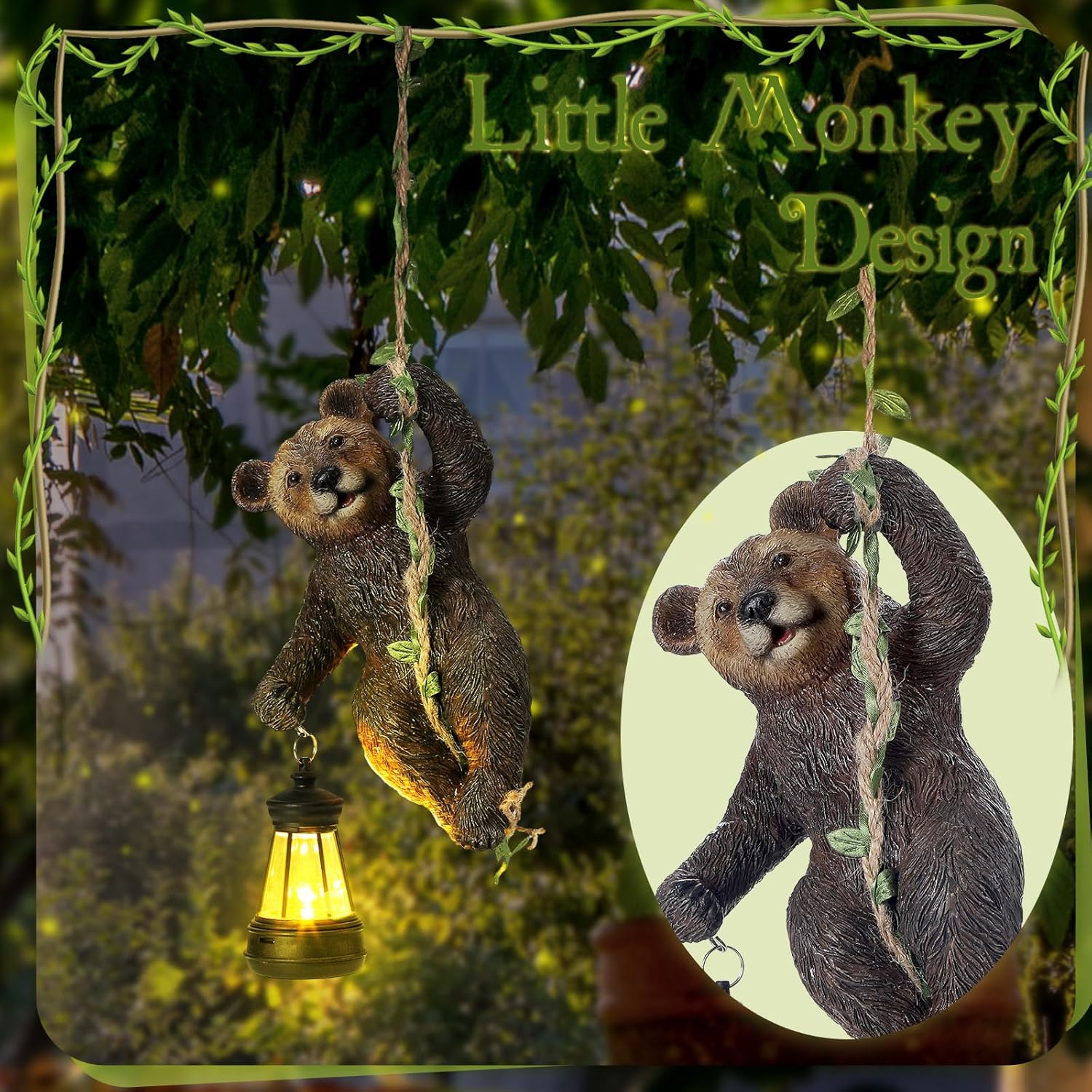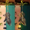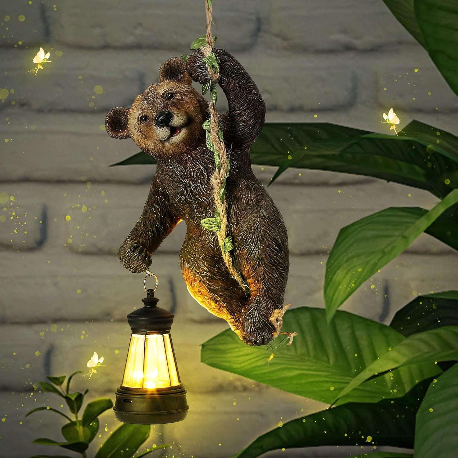 Rossesay 7 Inches Bear Statue Tree Hugger with Solar Light Resin Bear Statue Sign with LED Lantern Waterproof Hanging Figurine with Hook for Christmas Tree Decoration Outdoor Yard Garden (Brown)