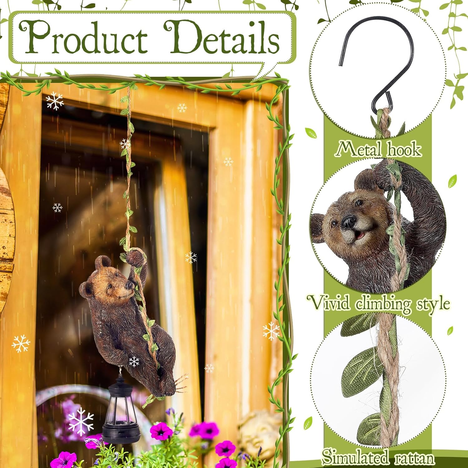 Be the first to review “Rossesay 7 Inches Bear Statue Tree Hugger with Solar Light Resin Bear Statue Sign with LED Lantern Waterproof Hanging Figurine with Hook for Christmas Tree Decoration Outdoor Yard Garden (Brown)” Cancel reply