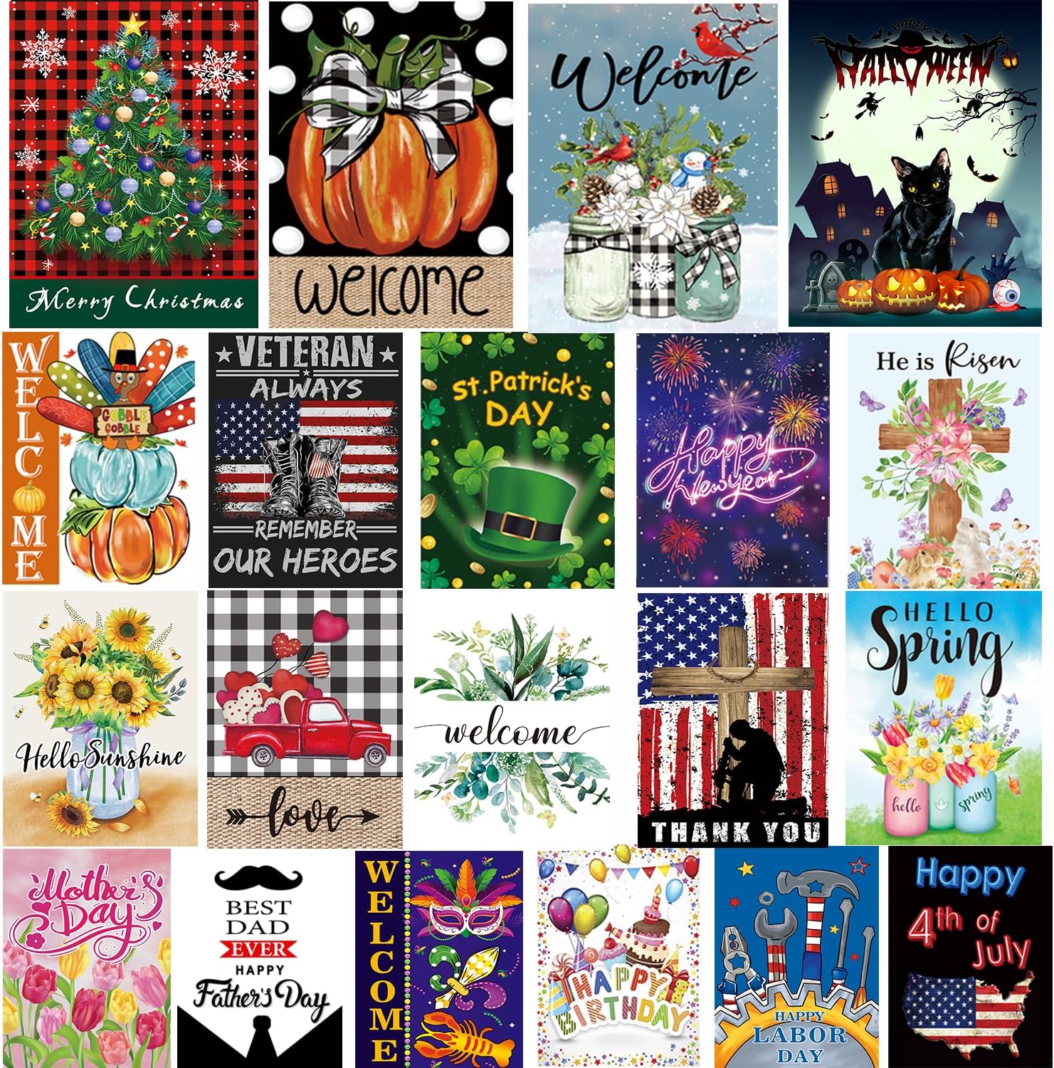 Seasonal Garden Flag Set of 20 – Double Sided 12 x 18 Inch Small Yard Flags for Outdoor Holiday Decorations, Christmas, Spring, Summer, Fall, and All Season Garden Flags for Outside Decor