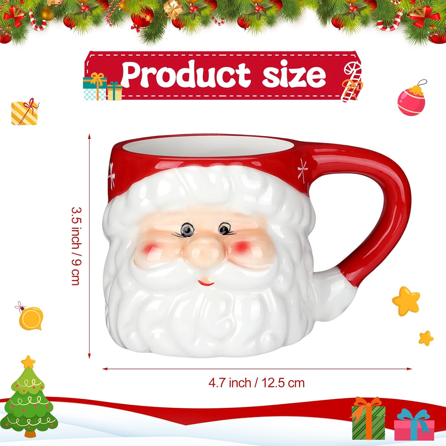 Sliner 2 Pcs Christmas Santa Coffee Mugs 11 oz Vintage Santa Claus Heads Ceramic Mug Christmas Themed Design Cup Set for Coffee Tea Hot Chocolate Xmas Holiday Gifts (Red)