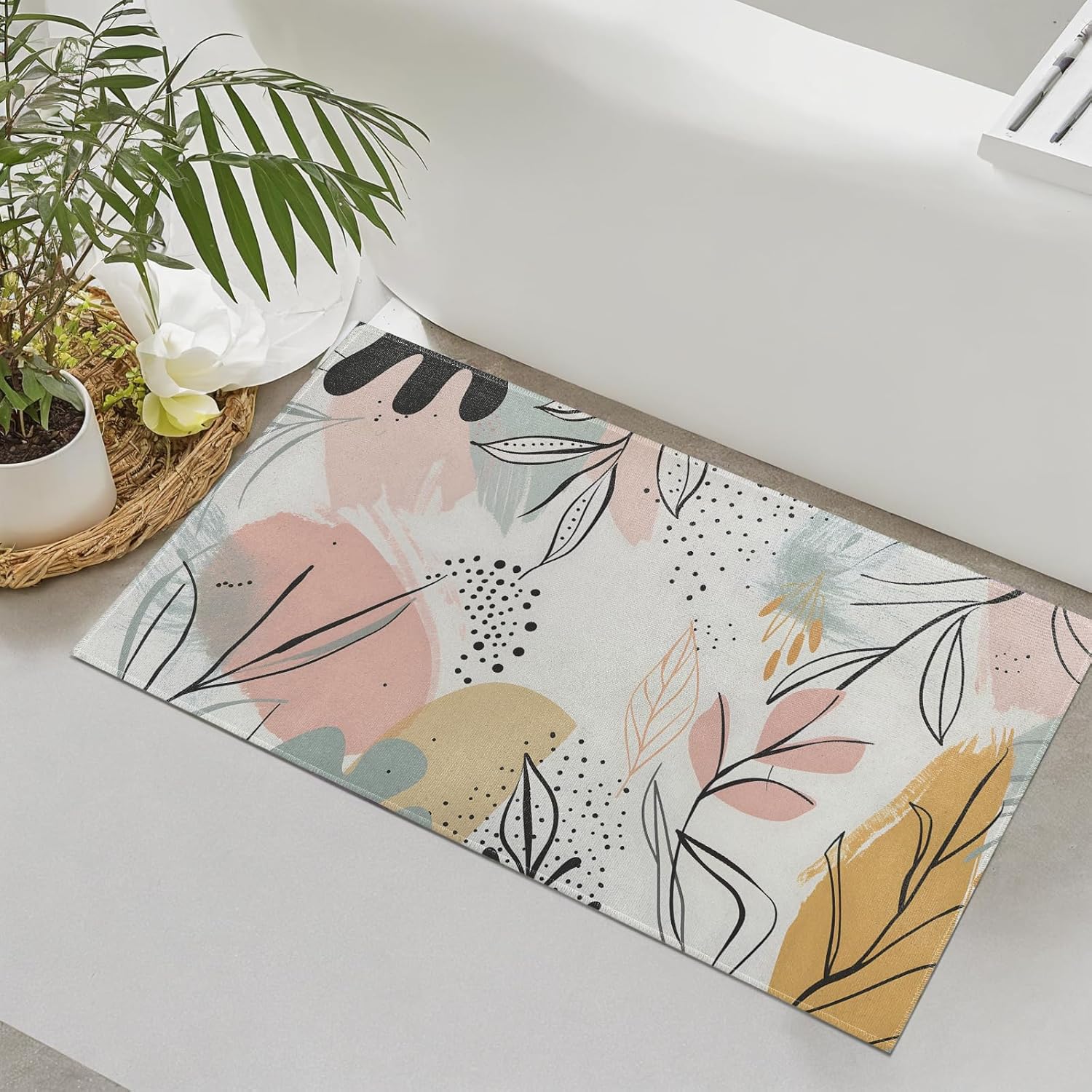 Be the first to review “SOAYOH Abstract Leaf Indoor Door Mat, Minimal Pastel Botanical Design Front Doormats, Retro Entryway Area Rug 17×29.5 Inch Soft Non Woven Floor Mats for Porch Kitchen Bathroom Decor Gifts” Cancel reply