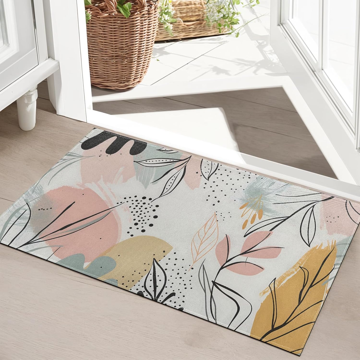 SOAYOH Abstract Leaf Indoor Door Mat, Minimal Pastel Botanical Design Front Doormats, Retro Entryway Area Rug 17×29.5 Inch Soft Non Woven Floor Mats for Porch Kitchen Bathroom Decor Gifts