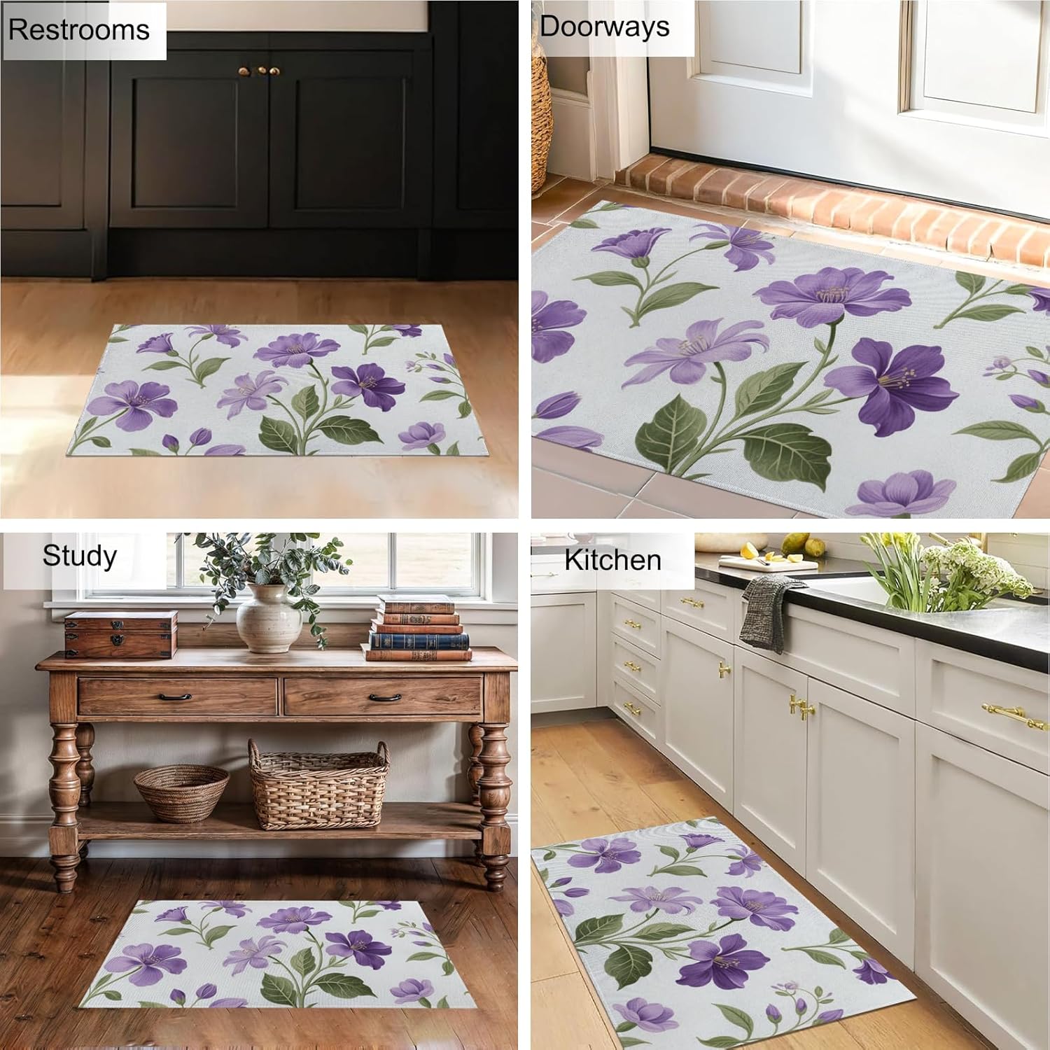 Refresh your indoor environment with this versatile nonwoven fabric floor mat that blends everyday function with decorative charm. Its compact design fits seamlessly in a variety of areas such as entryways, kitchens, bathrooms, laundry rooms, or near sinks. The finely printed surface showcases vibrant colors and detailed patterns, adding a welcoming touch to any corner of your home. With a wide selection of artistic and seasonal styles available, this mat easily complements modern, rustic, or casual interiors. Crafted for stability and convenience, the mat is backed with a dotted rubber material that helps it stay firmly in place on common indoor surfaces. Whether on wood, tile, or laminate floors, the textured base helps reduce sliding for enhanced safety. Its thin construction allows most doors to open smoothly without getting caught, making it an ideal option for high-traffic spaces where practicality matters. Maintaining the mat is effortless. For regular upkeep, a simple shake outdoors can remove dust or debris. For more thorough care, spot cleaning with mild detergent or hand washing helps restore its appearance without damaging the design. The soft surface fabric retains its texture and brightness after repeated cleanings, making it well suited for homes with pets, guests, or frequent activity. Whether used to brighten a room or gifted for occasions such as housewarmings, holidays, or seasonal refreshes, this decorative floor mat is a smart addition to any home. It combines everyday comfort with stylish appeal, bringing color, personality, and convenience to your indoor living space.