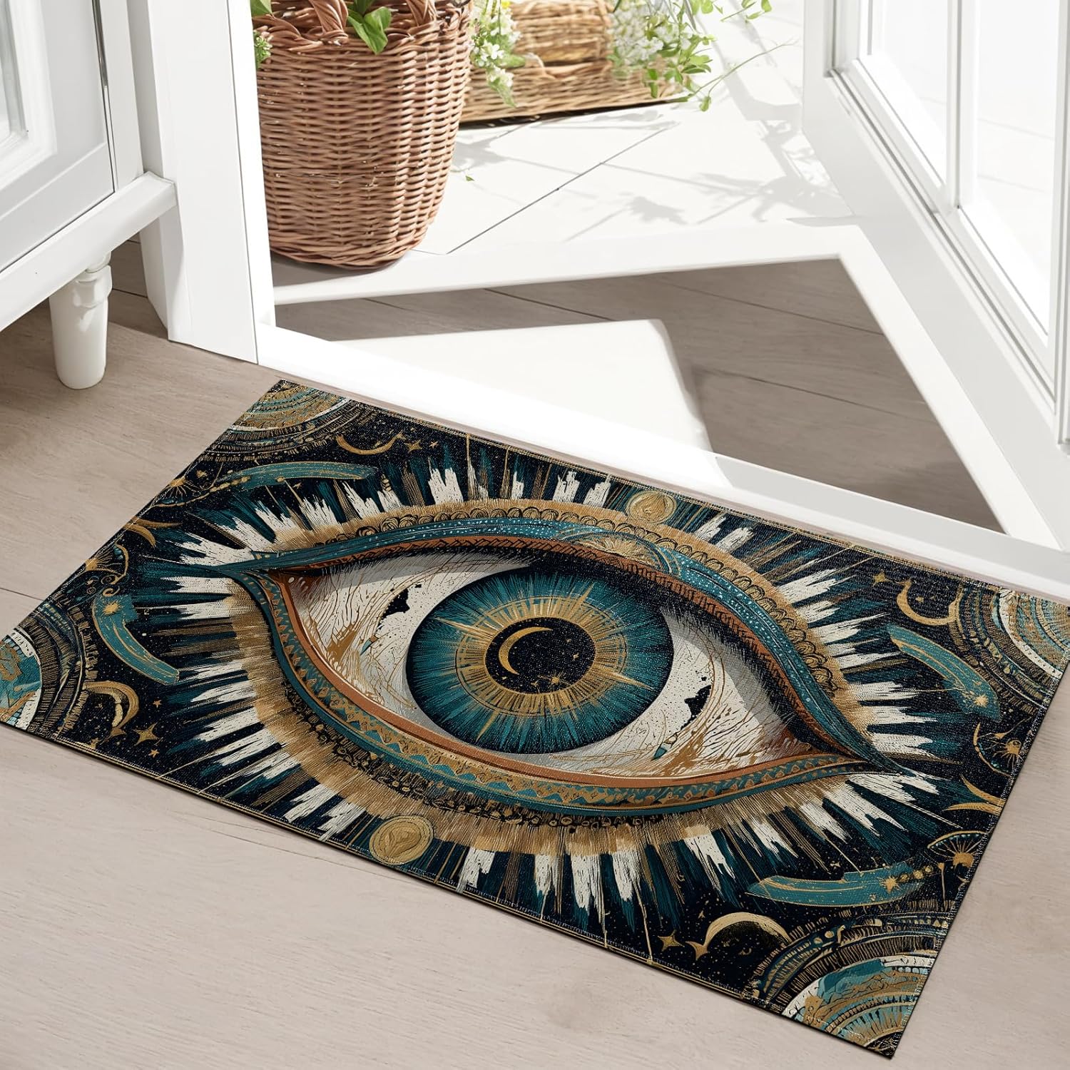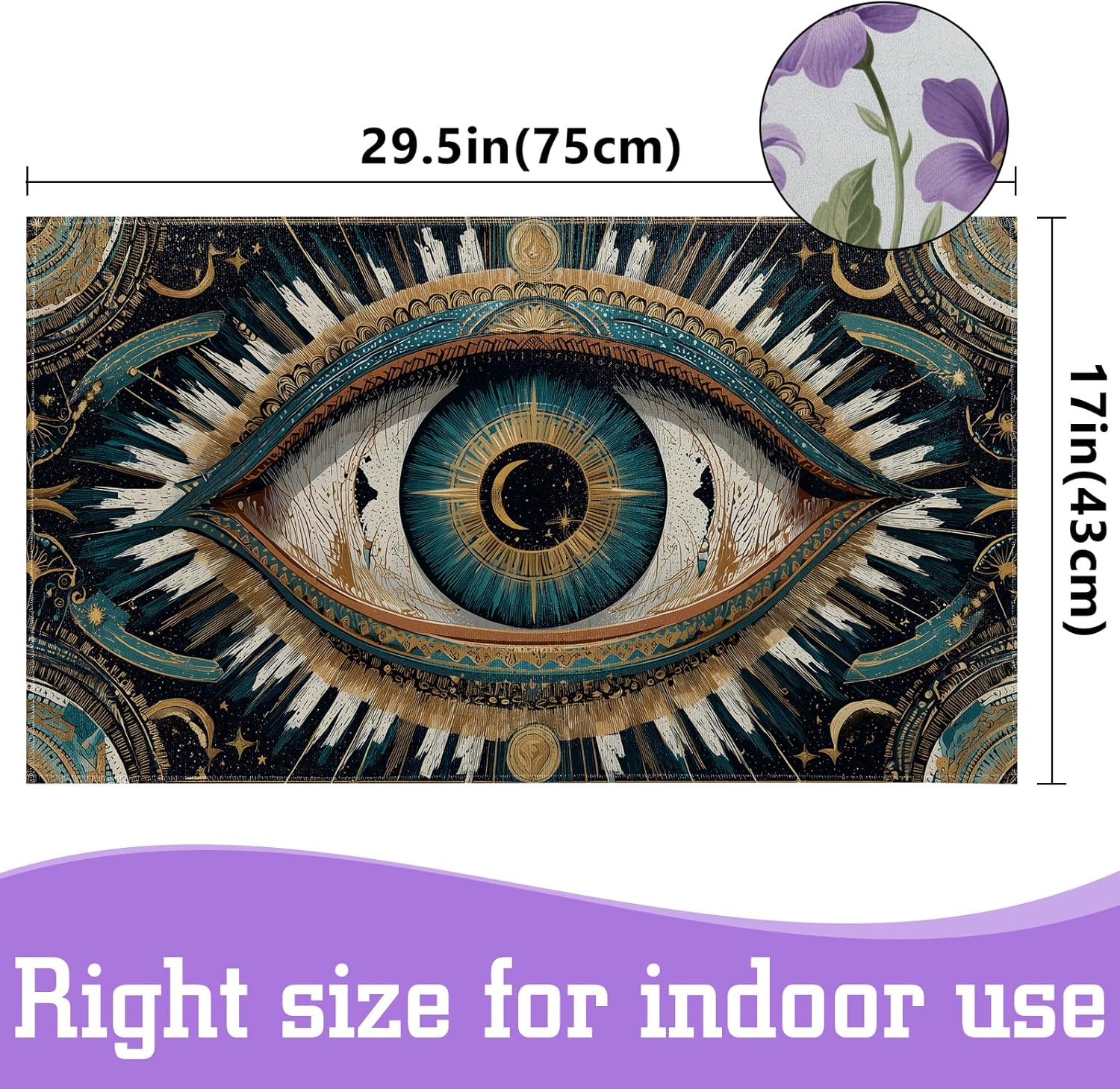 SOOYAH Mystic Eye Indoor Door Mat, Celestial Moon and Star Symbol Front Doormats, Boho Occult Entryway Area Rug 17×29.5 Inch Soft Non Woven Floor Mats for Hallway Kitchen Bathroom Decor Gifts