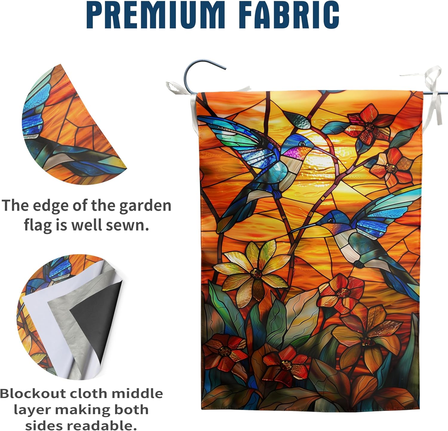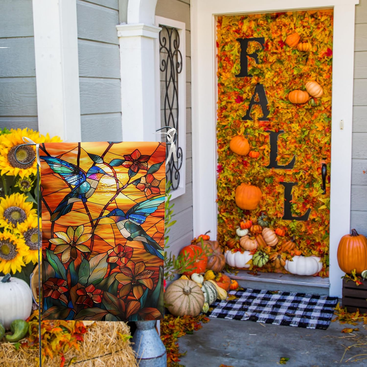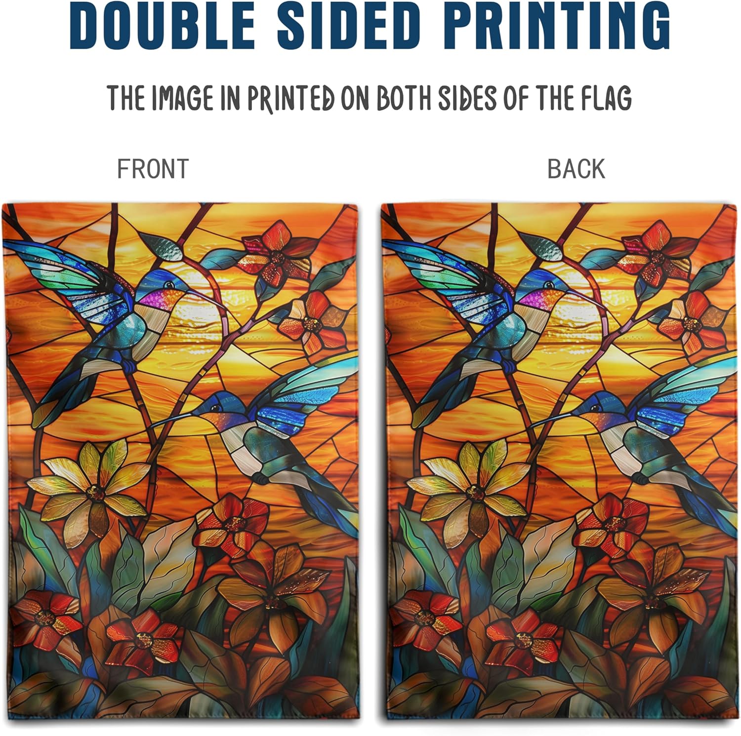 Stained Glass Hummingbird Garden Flag Spring Summer House Flag Fall Floral Decorative Yard Flags for Outside 28×40 Double Sided Large Seasonal Lawn Flags Rustic Outdoor Decor