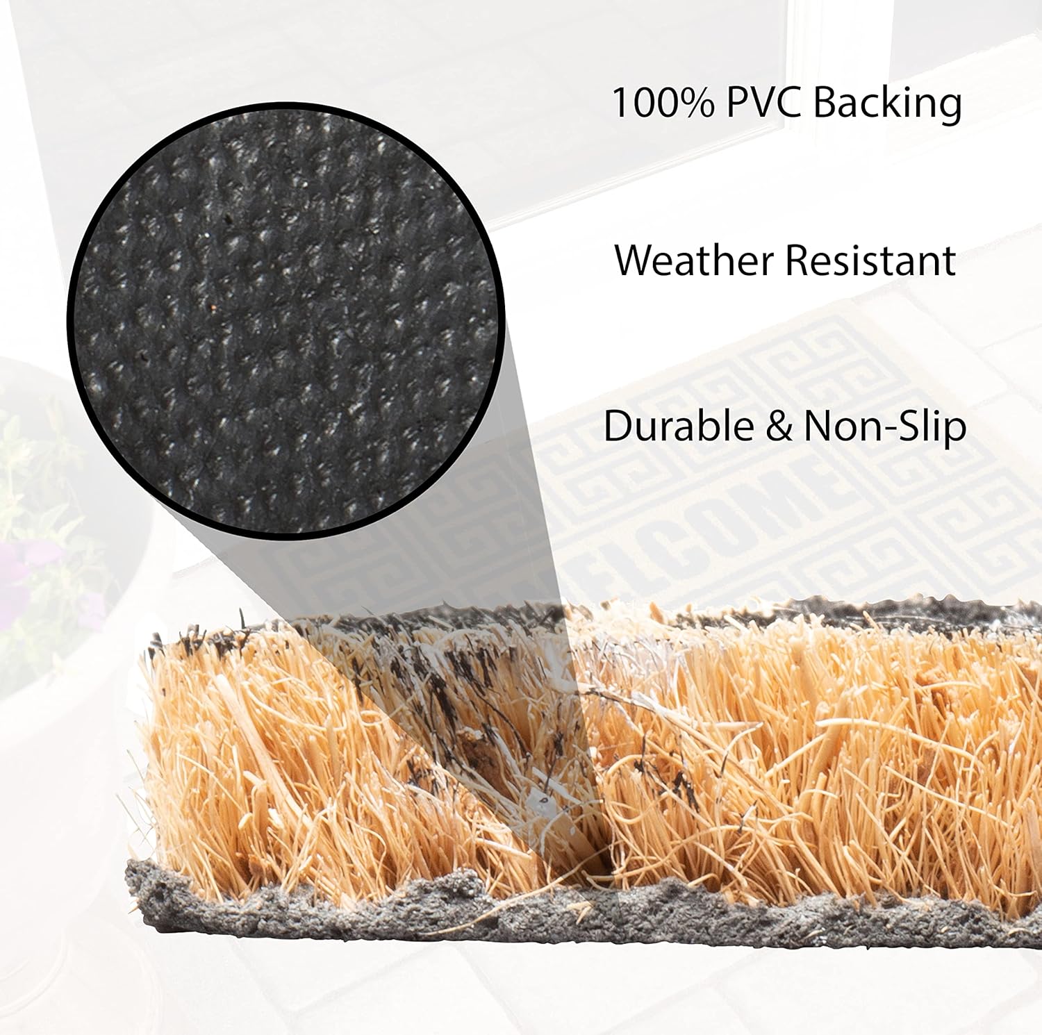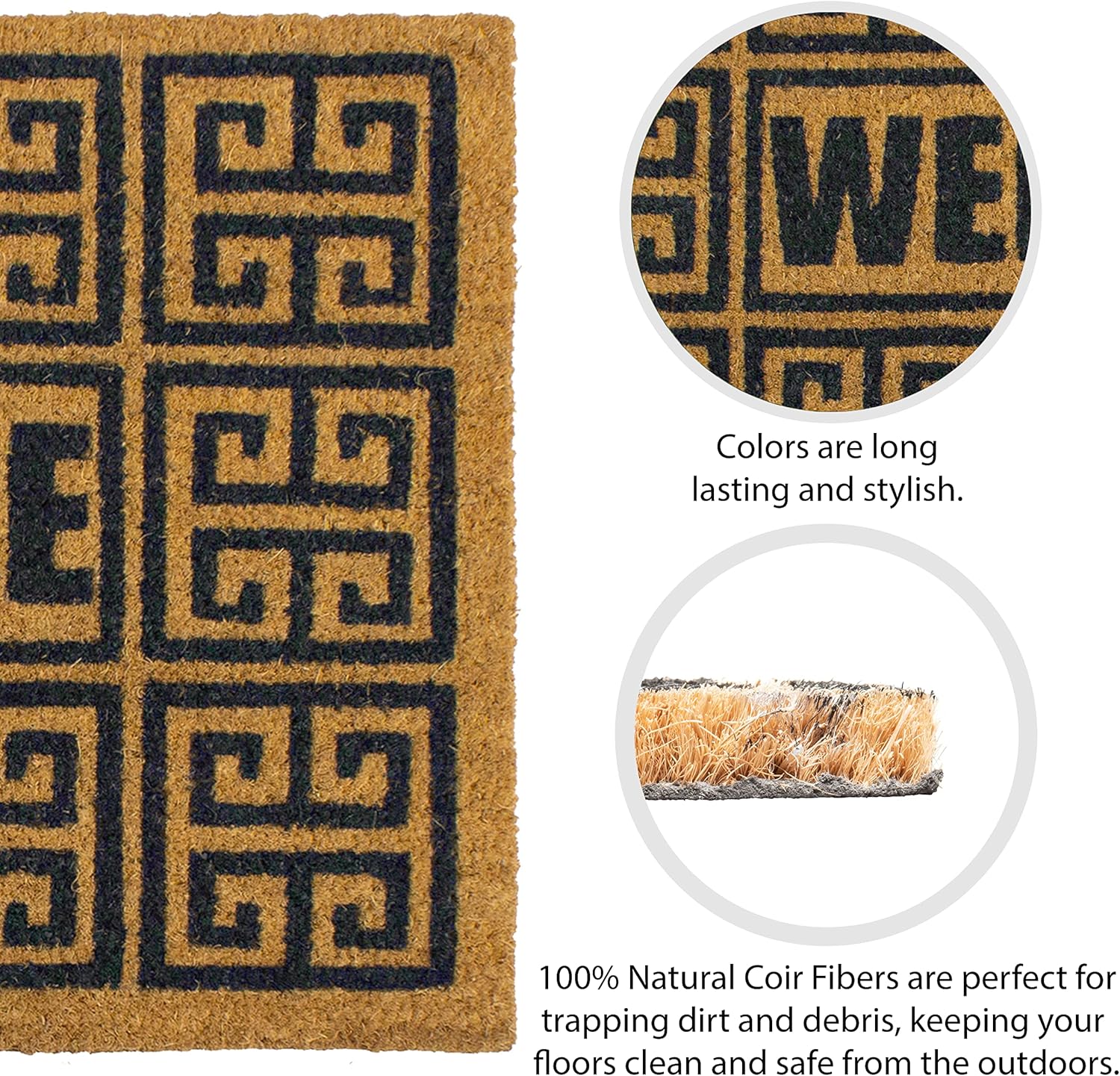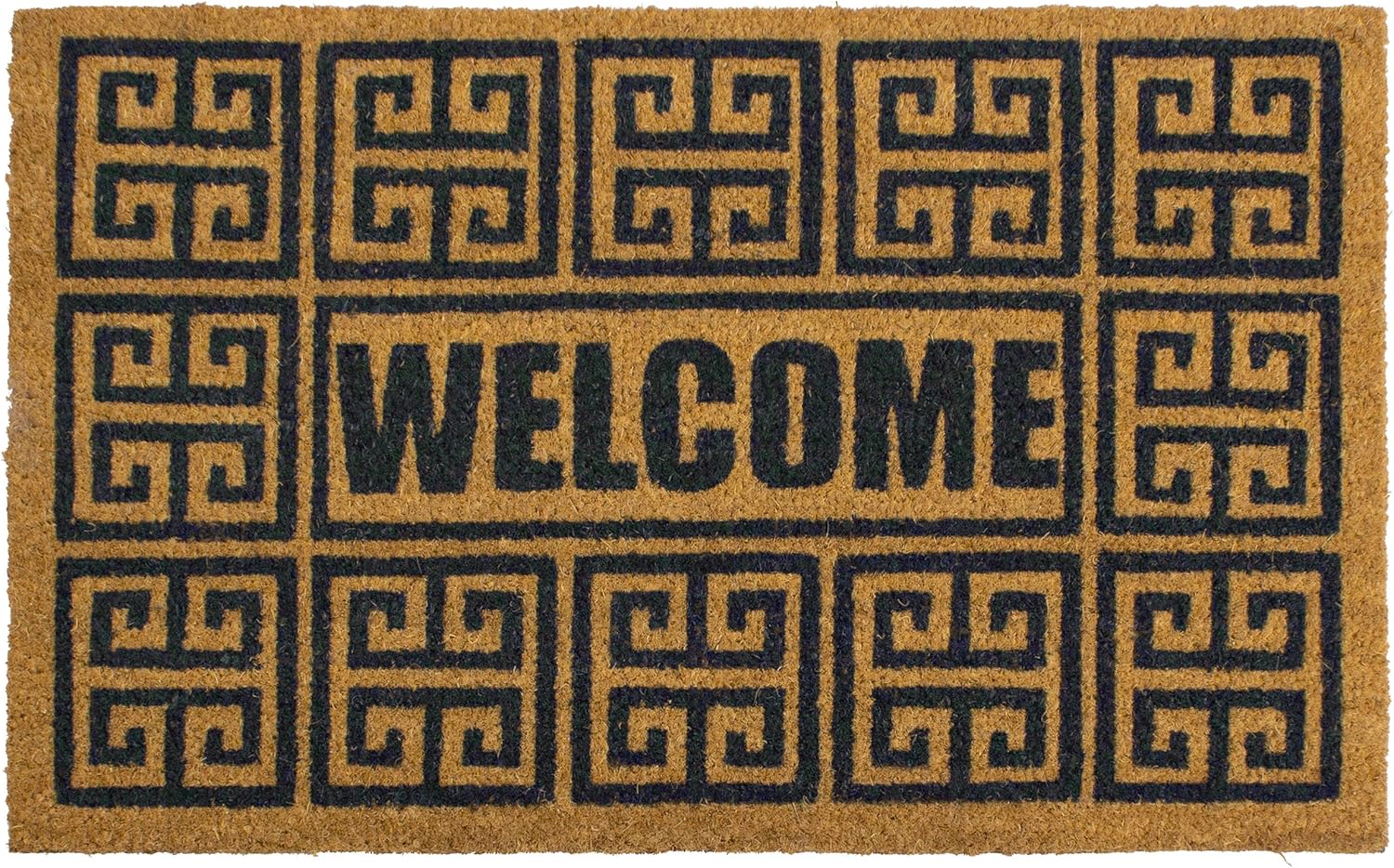 Storm Stopper – Doormat Geo Welcome All Weather Heavy Duty Mat 100% Natural Coir Face Non-Slip Outdoor Home Décor Absorbent, Fade Resistant & Pet Friendly 18” x 28”