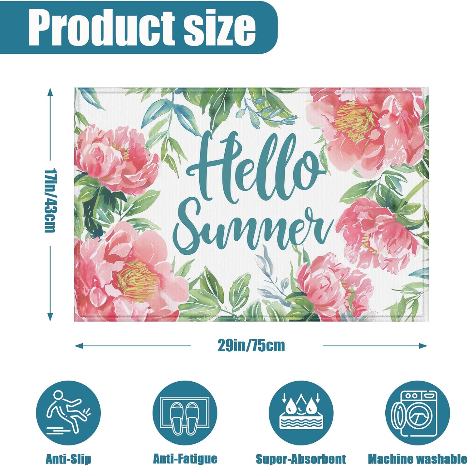 Be the first to review “Summer Peony Welcome Indoor Door Mat, Flower Floral Outdoor Entrance Doormat for Entryway Kitchen Bathroom 17 X 29 Inch” Cancel reply