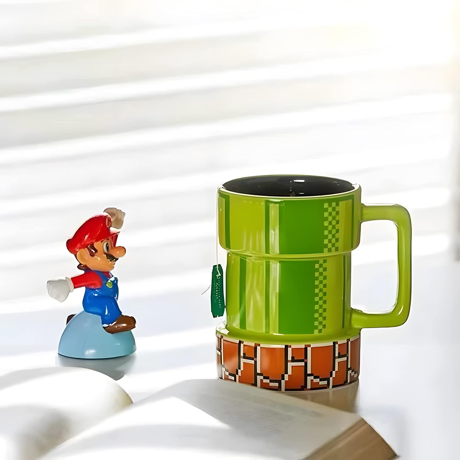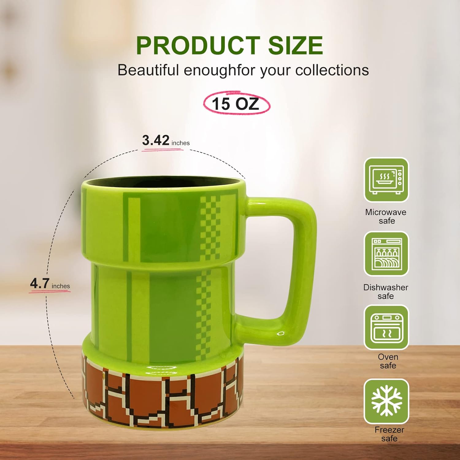 Super Mario Warp Pipe Mug Ceramic Coffee Mug Gift for Gamers, Fathers, Coffee Enthusiasts, for Cappuccino, Latte or Hot Tea, 15 Oz, Green