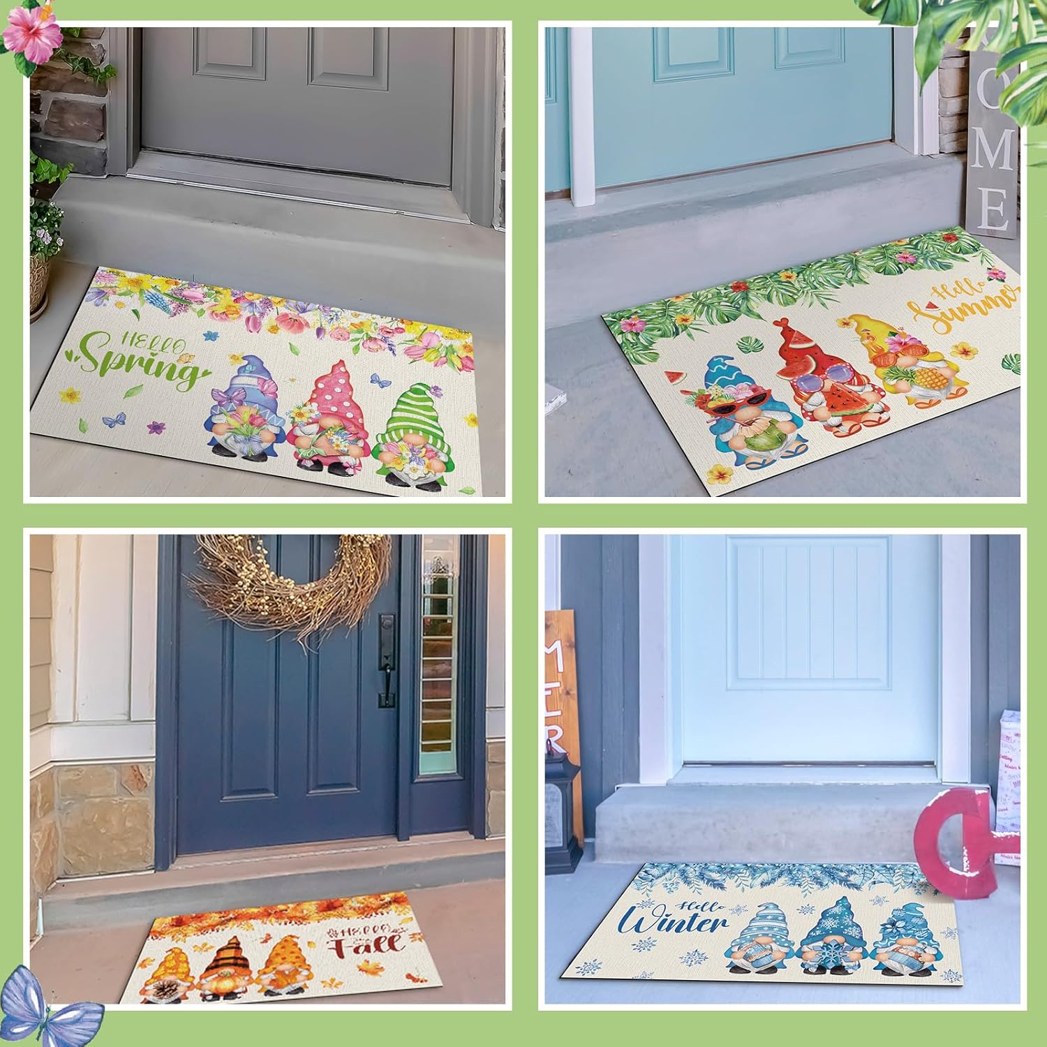 Be the first to review “Tinideya 4 Pcs Seasonal Door Mats Gnome 24 x 16 Inch Interchangeable Spring Summer Fall Winter Welcome Doormats Non Slip Washable Indoor Outdoor Rug for Entry Decor” Cancel reply