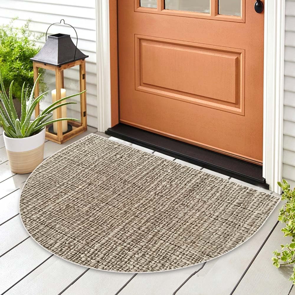 TOMWISH Beign Half Circle Rug 16X24 White Washable Indoor Outdoor Half Round Door Mat Absorbent Half Moon Rug for Bedroom Living Room Kitchen Bathroom Launday Fireplace