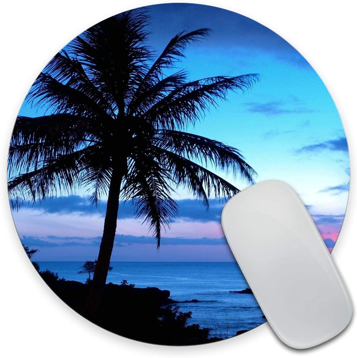 Tropical Paradise Ocean Beach Scene with Palm Trees Mouse Pad,Anti Slip Rubber Round Mousepads Desktop Notebook Mouse Mat for Working and Gaming
