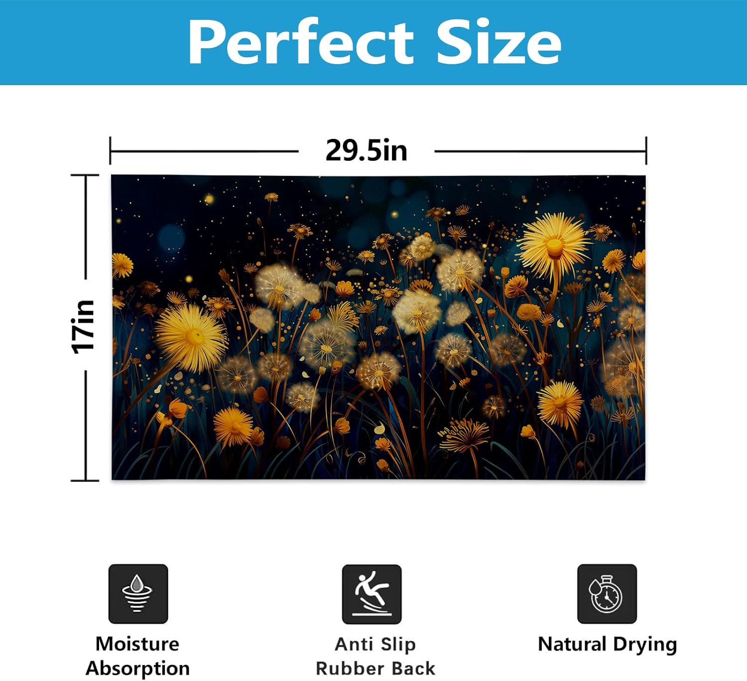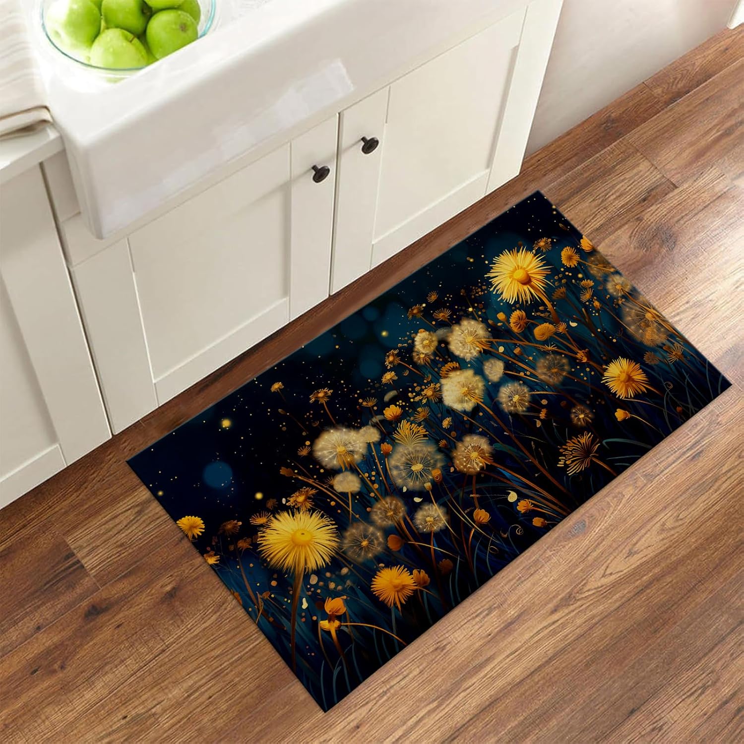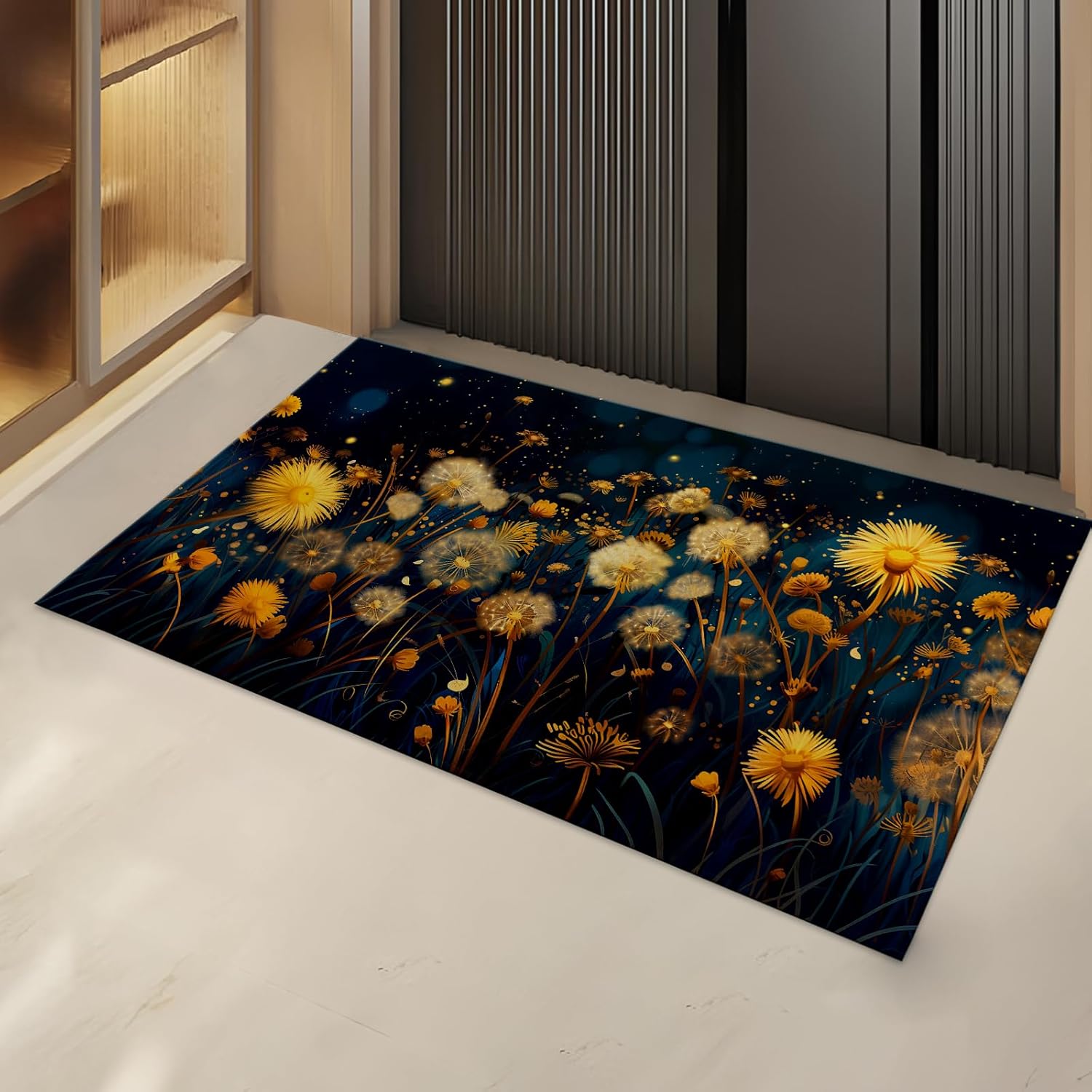 Turamurra Dandelion Flower Field Indoor Door Mat Gifts, Floor Area Rug for Entryway, Living Room or Bathroom, Non-Slip Starry Floral Doormat Home Decor Rug 17×29.5 Inch