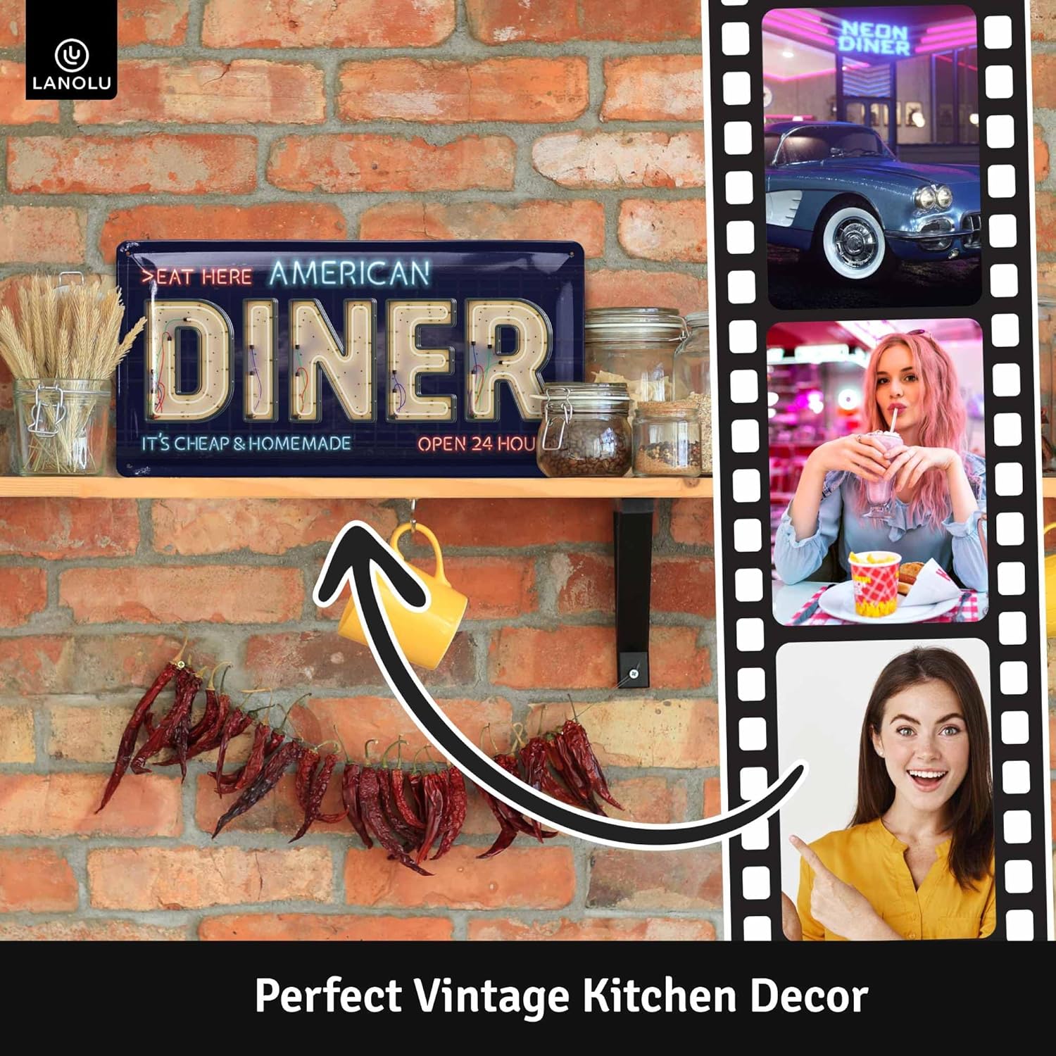 Vintage Tin American DINER, Metal Sign, 6.7×13.4 inch