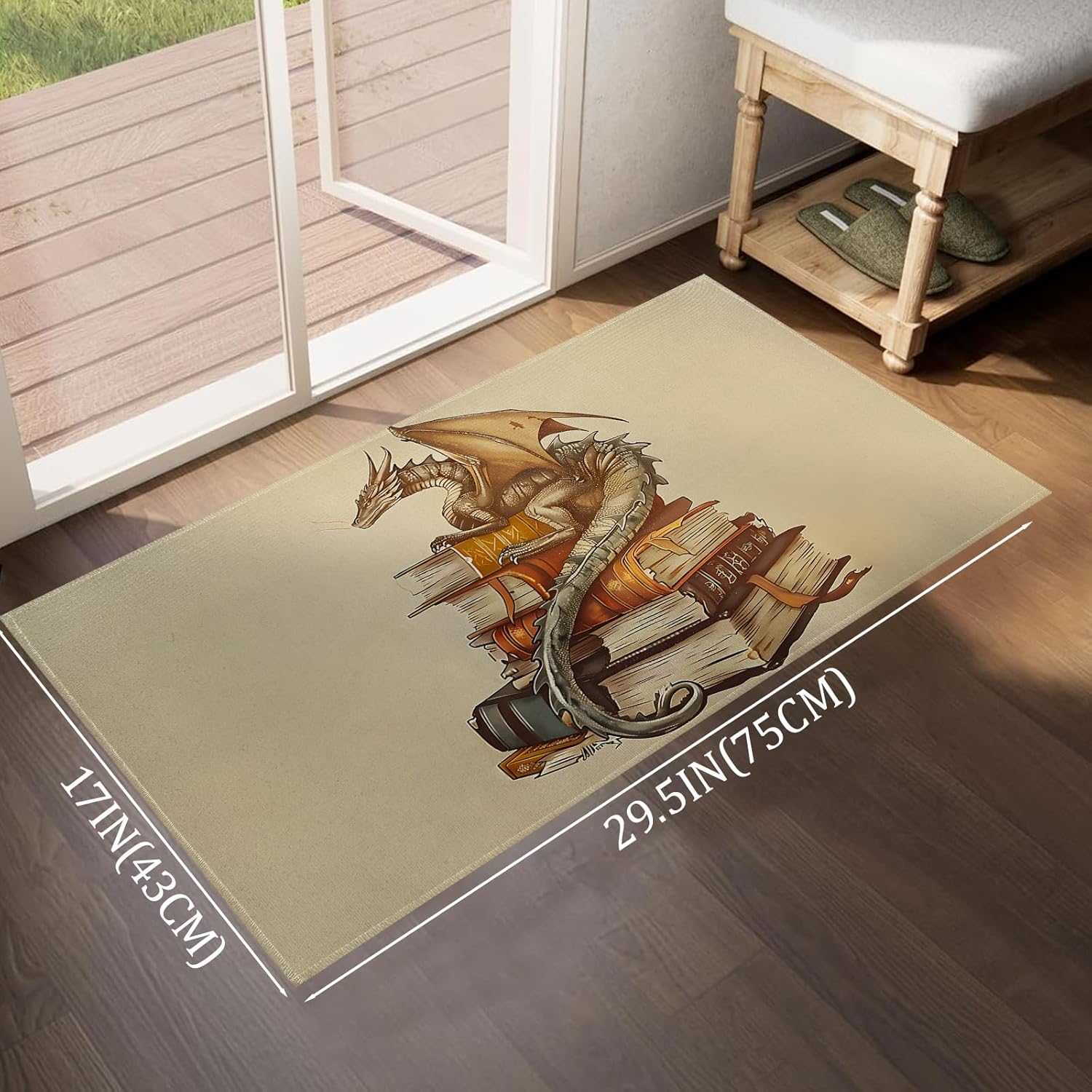 VODRM Dragon and Book Indoor Door Mat, Fantasy Retro Floor Doormat,17×29.5in,Non Woven Non Slip Rubber Backing Ancient Books Rug for Porch Insider,Bedroom,Kitchen,Doormats Gifts,Rv Camper Decor
