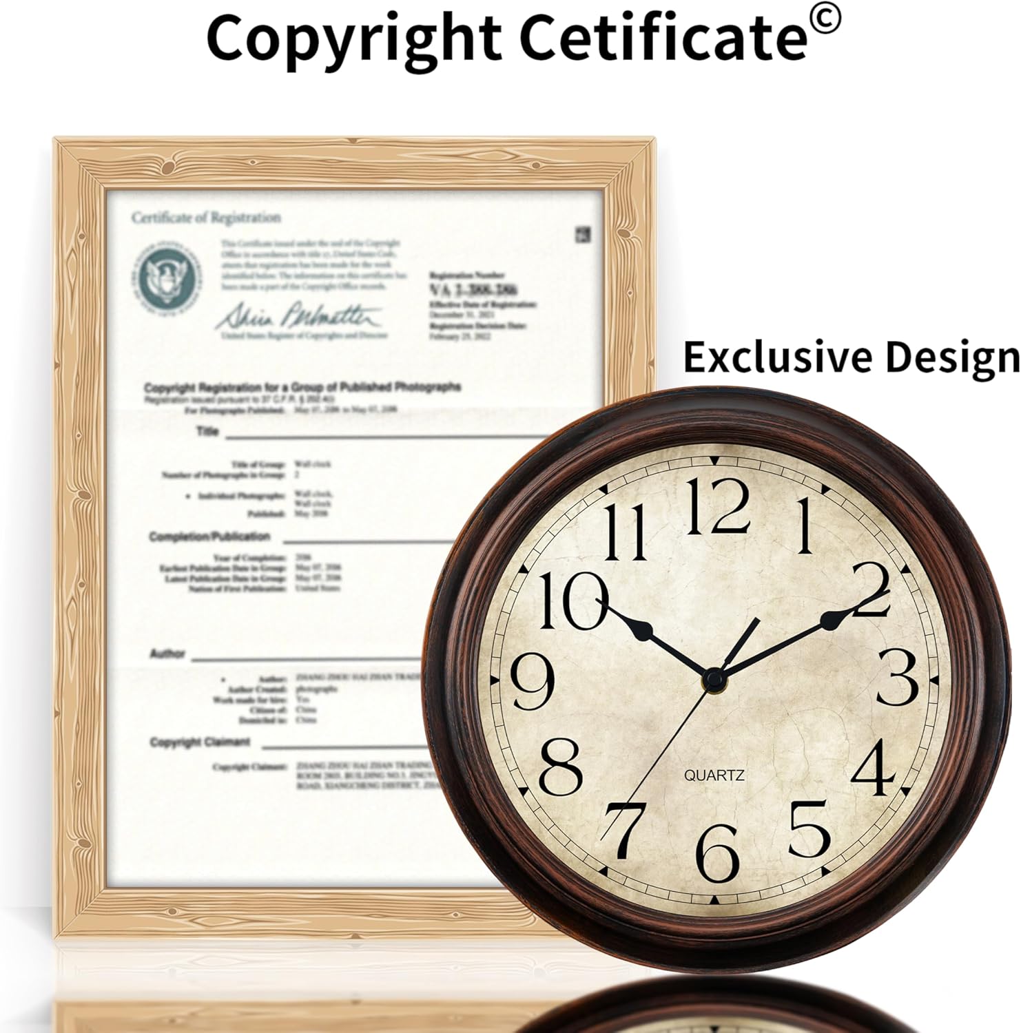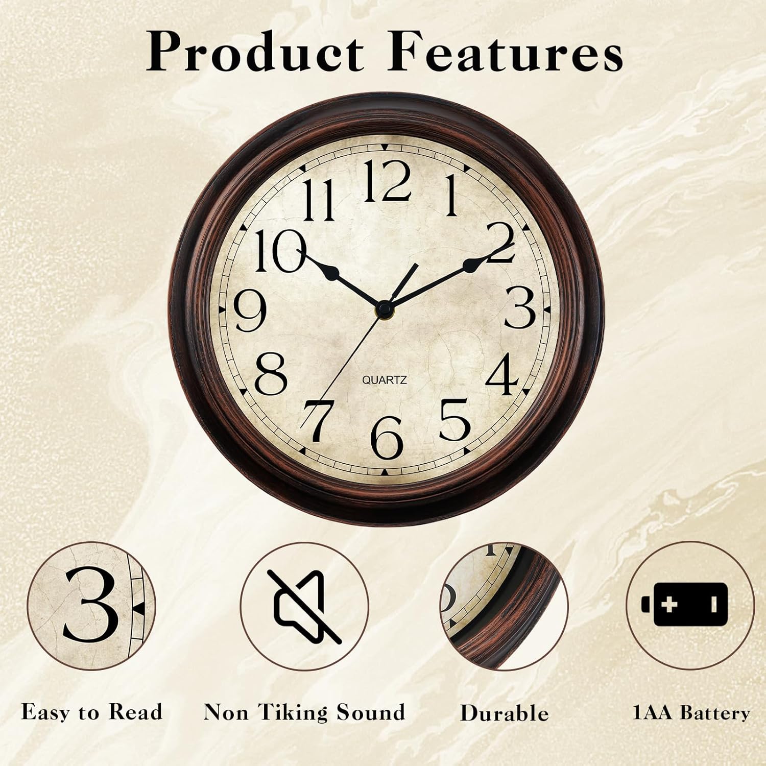 Wall Clock 10 Inch Battery Operated Silent Non-Ticking Analog Wall Clocks Vintage Retro Rustic Style Decorative for Bedroom Living Room Kitchen Office (Bronze)
