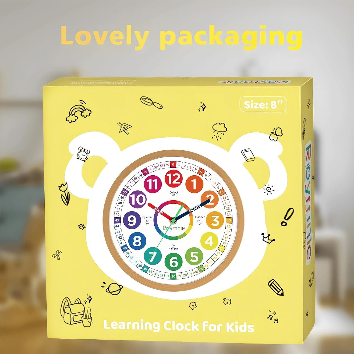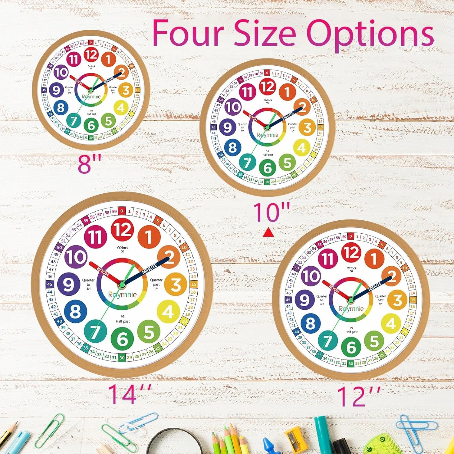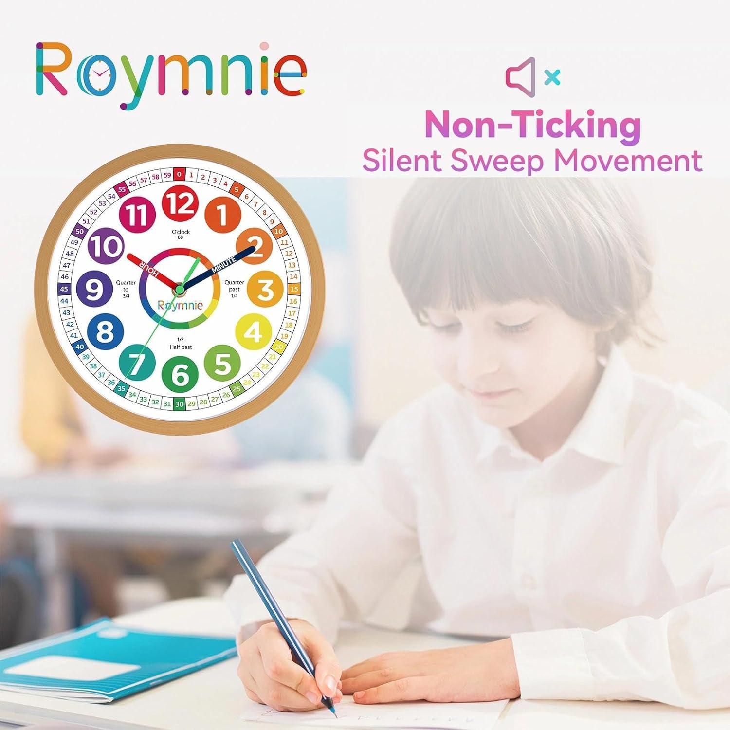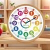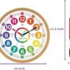 Wall Clock 10 Inch for Kids Learning Easily Kids Teaching Clock Analog Silent Non Ticking Battery Operated Colorful Teaching Time Clock Decorative for Kids Room Kitchen School