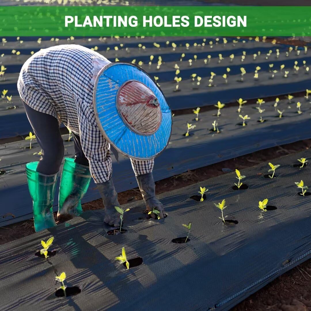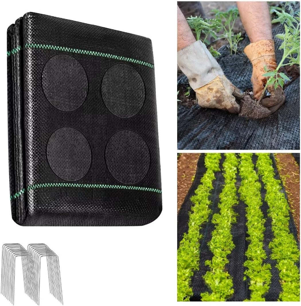 warmfarm 1Pack 4x25ft Barrier Landscape Fabric Heavy Duty with Holes,Thicken Block Gardening Ground Cover Mat,Garden Cloth,Black Plastic Ground Cover,Commercial Driveway Fabric